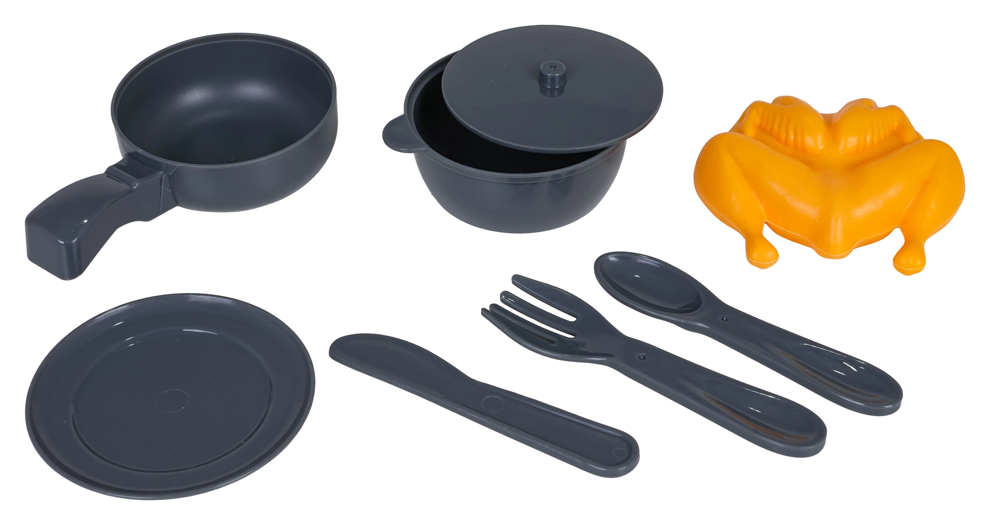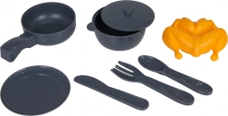 • Pribor u pakiranju: lonac s poklopcem, tava, piletina, tanjurić, nož, vilica, žličica