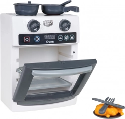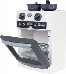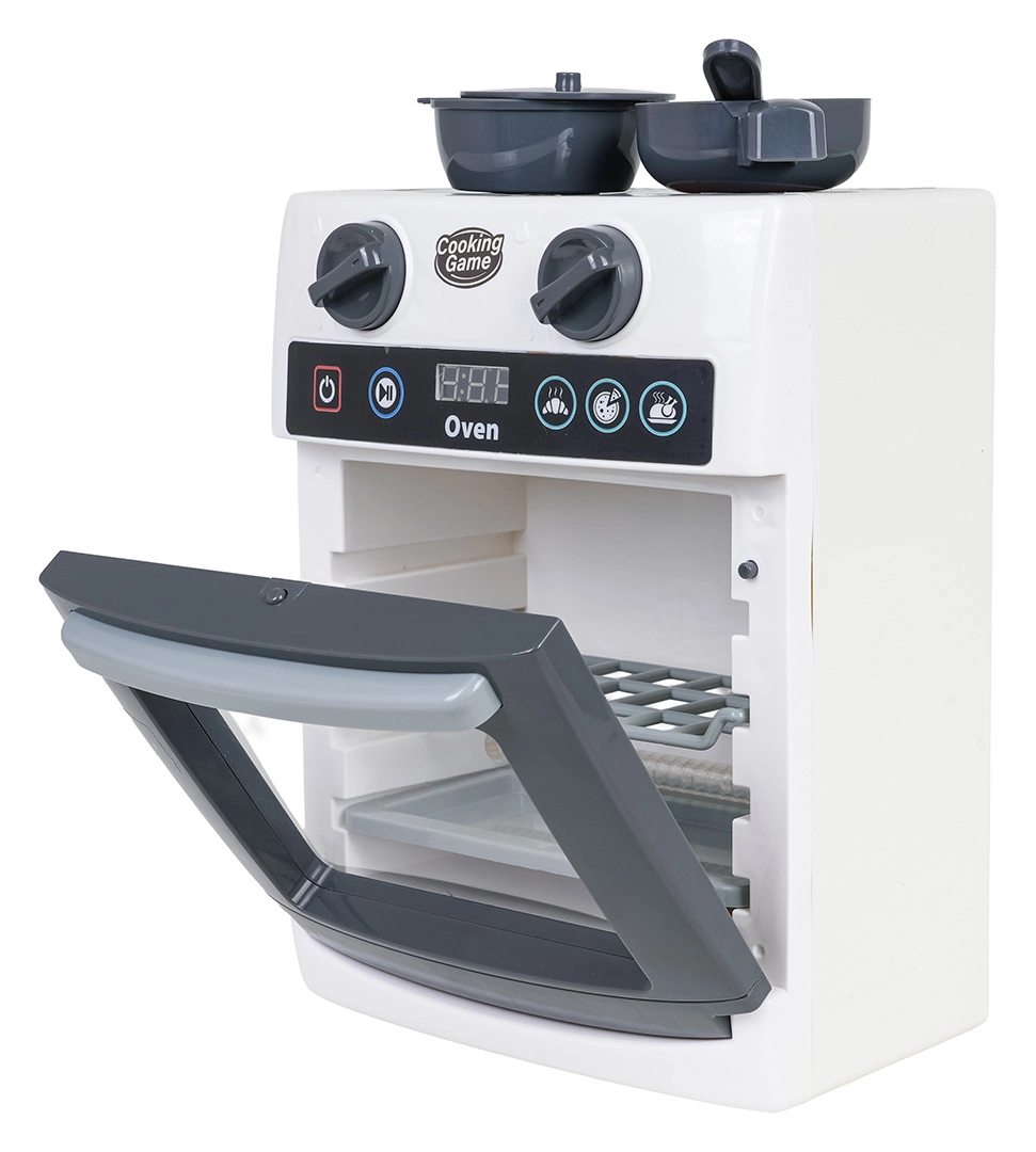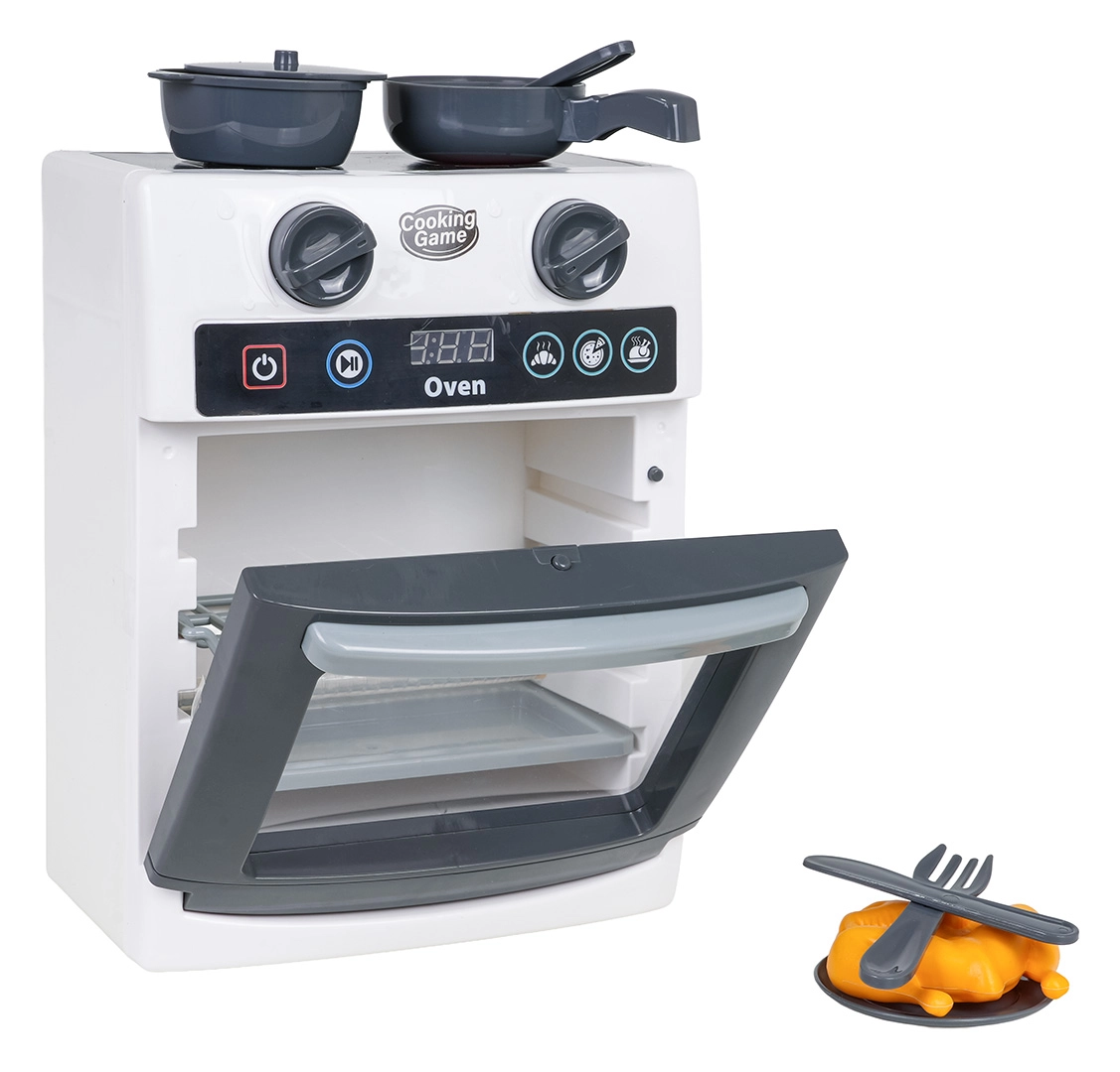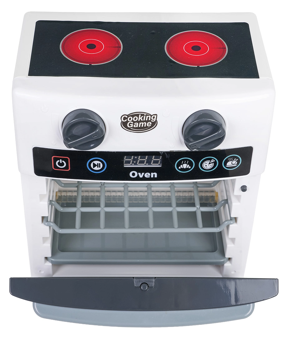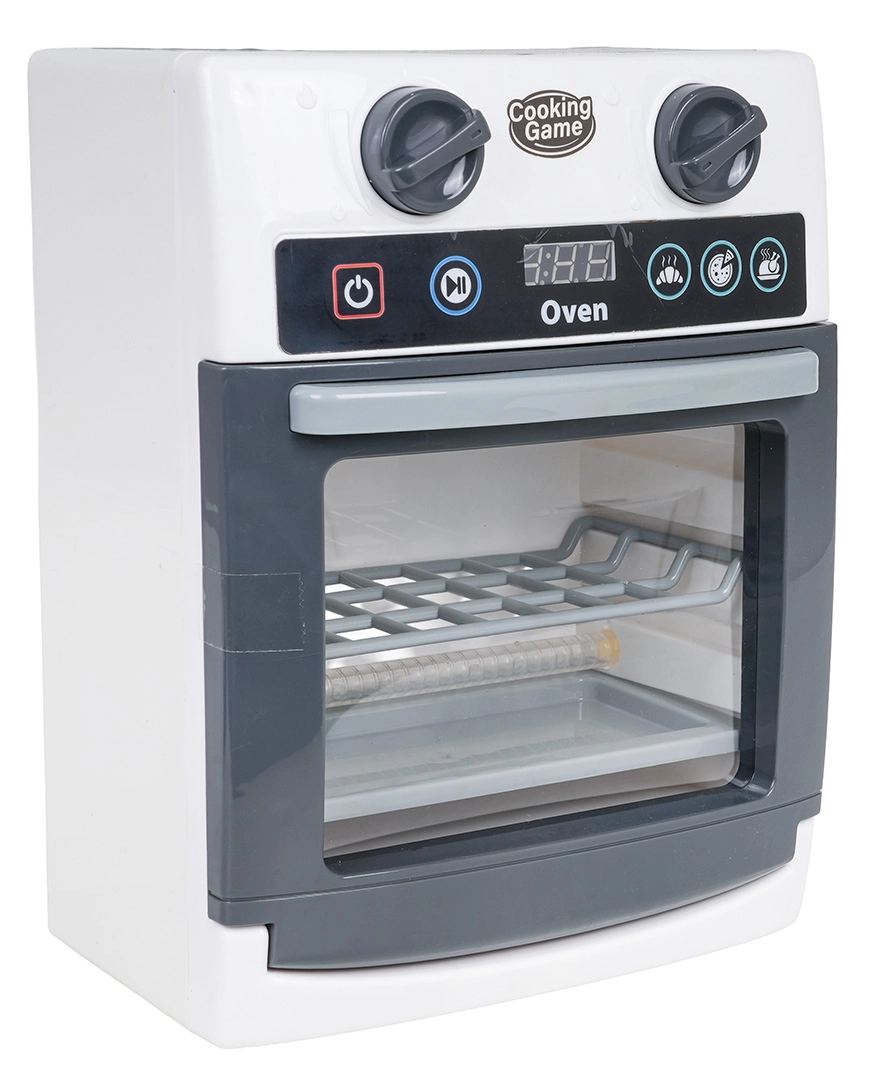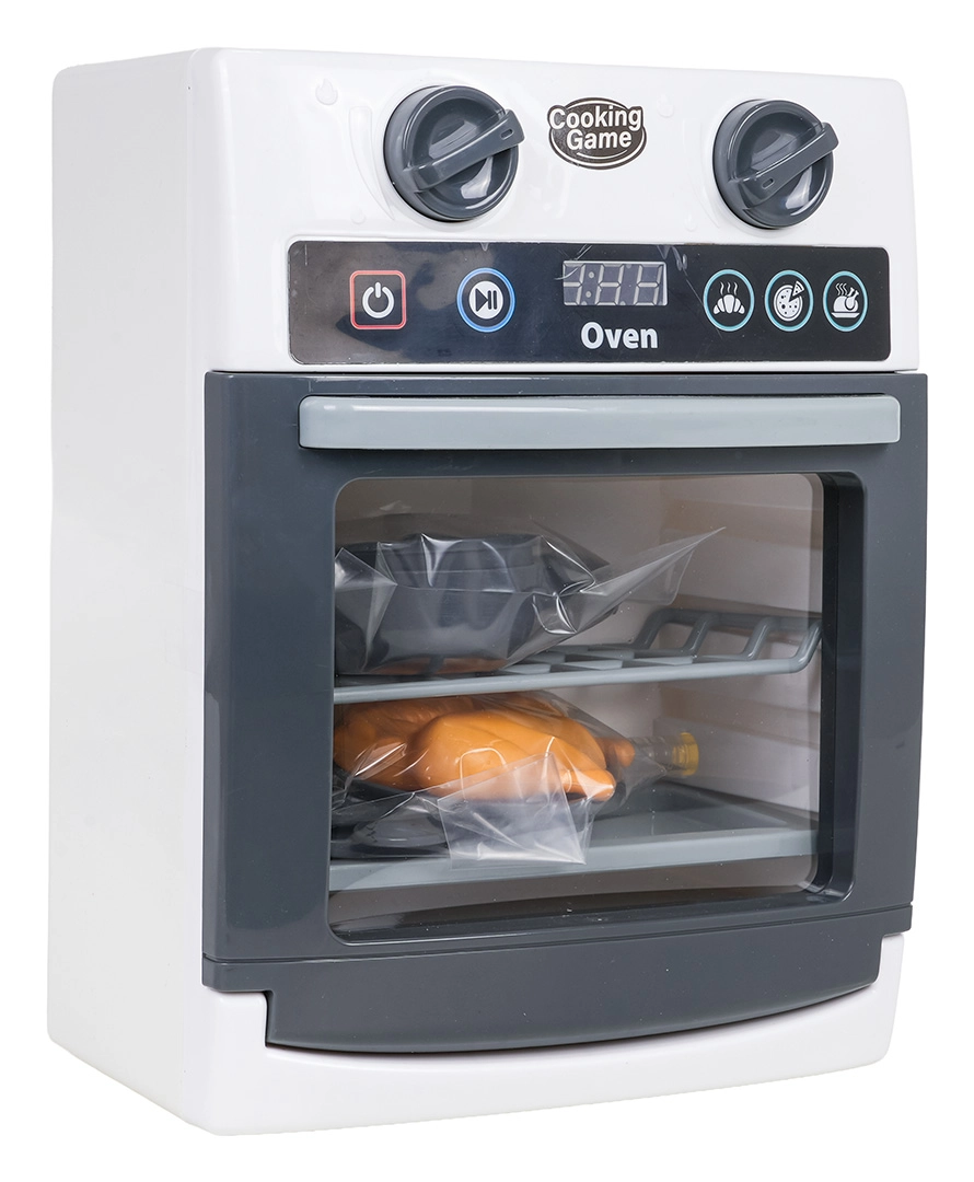 Ova dječja pećnica vjerno oponaša pravi uređaj – ima prozirna vrata, pomične upravljačke kotačiće i ploču s timerom. Tijekom pečenja osvjetljava se unutrašnjost i čuju se realistični zvukovi otvaranja/zatvaranja vrata, pečenja i završetka programa. Igra kuhanja tako dobiva novu dimenziju kreativnosti i mašte.