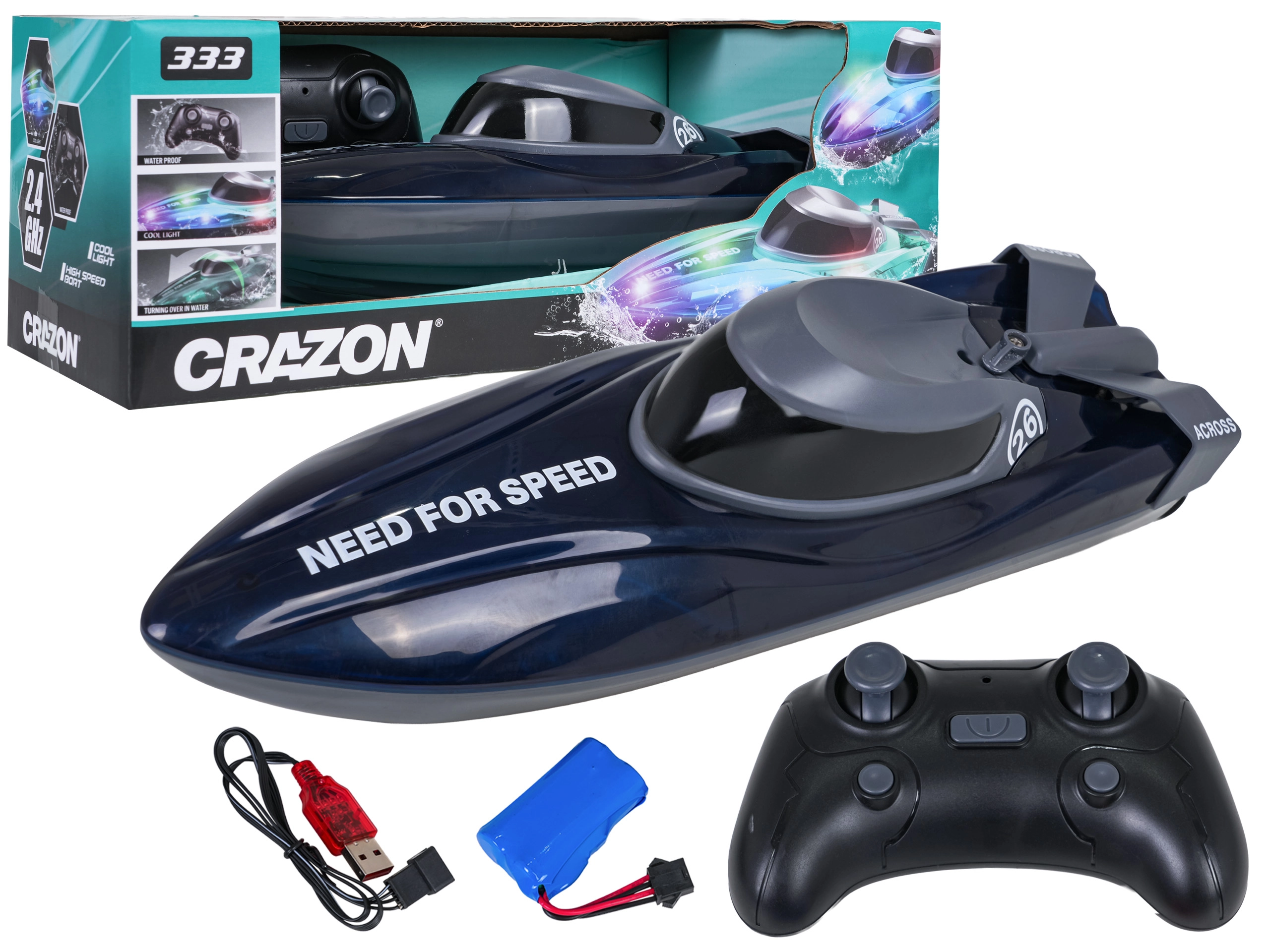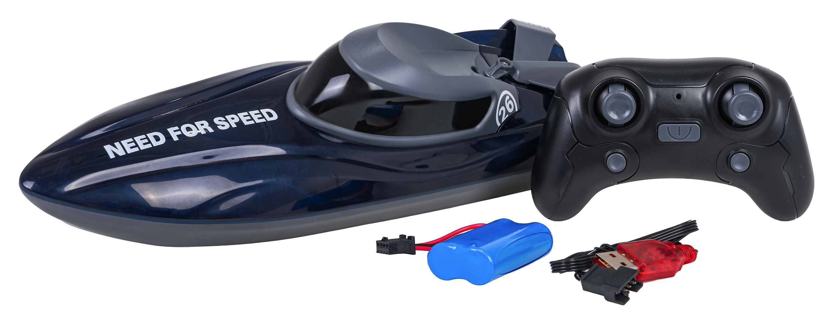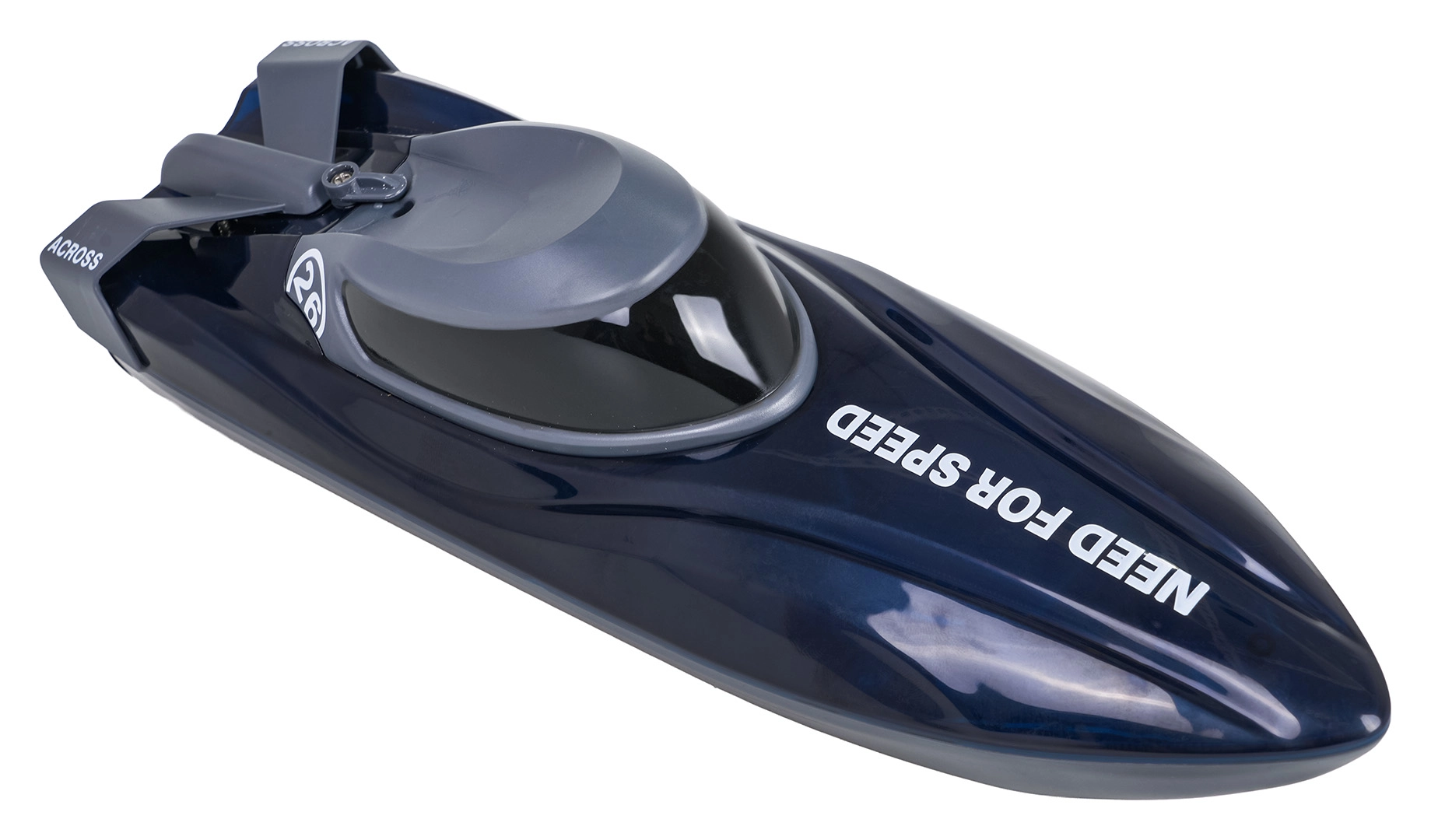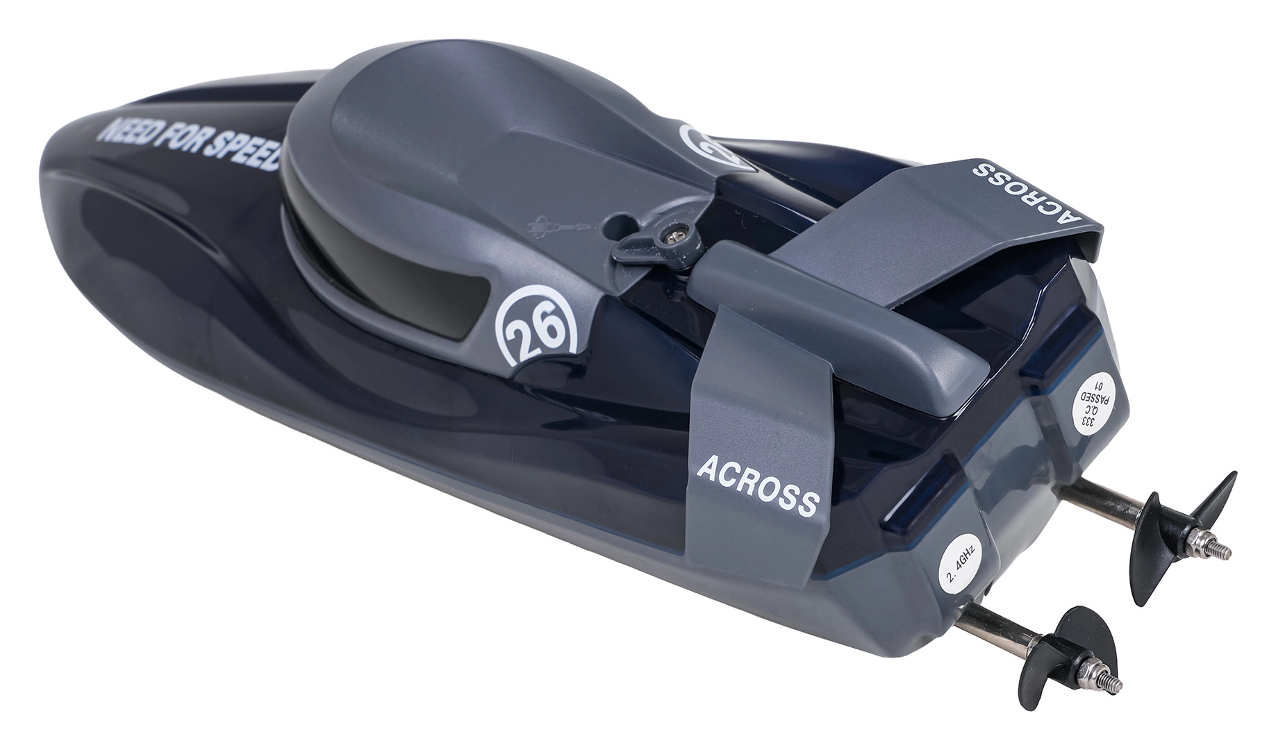Osvijetljeni trup povećava vidljivost i daje vožnji atraktivan izgled u sumrak. Domet upravljanja cca 30 m, rad do 20 minuta s baterijom 7,4 V i USB punjenje (cca 3 sata) čine ovaj čamac idealnom igračkom za bazen i mirne vodene površine.