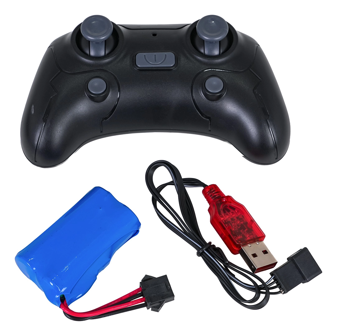 - RC čamac s rasvjetom, baterija 7,4 V, 2,4 GHz upravljač, USB kabel za punjenje