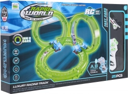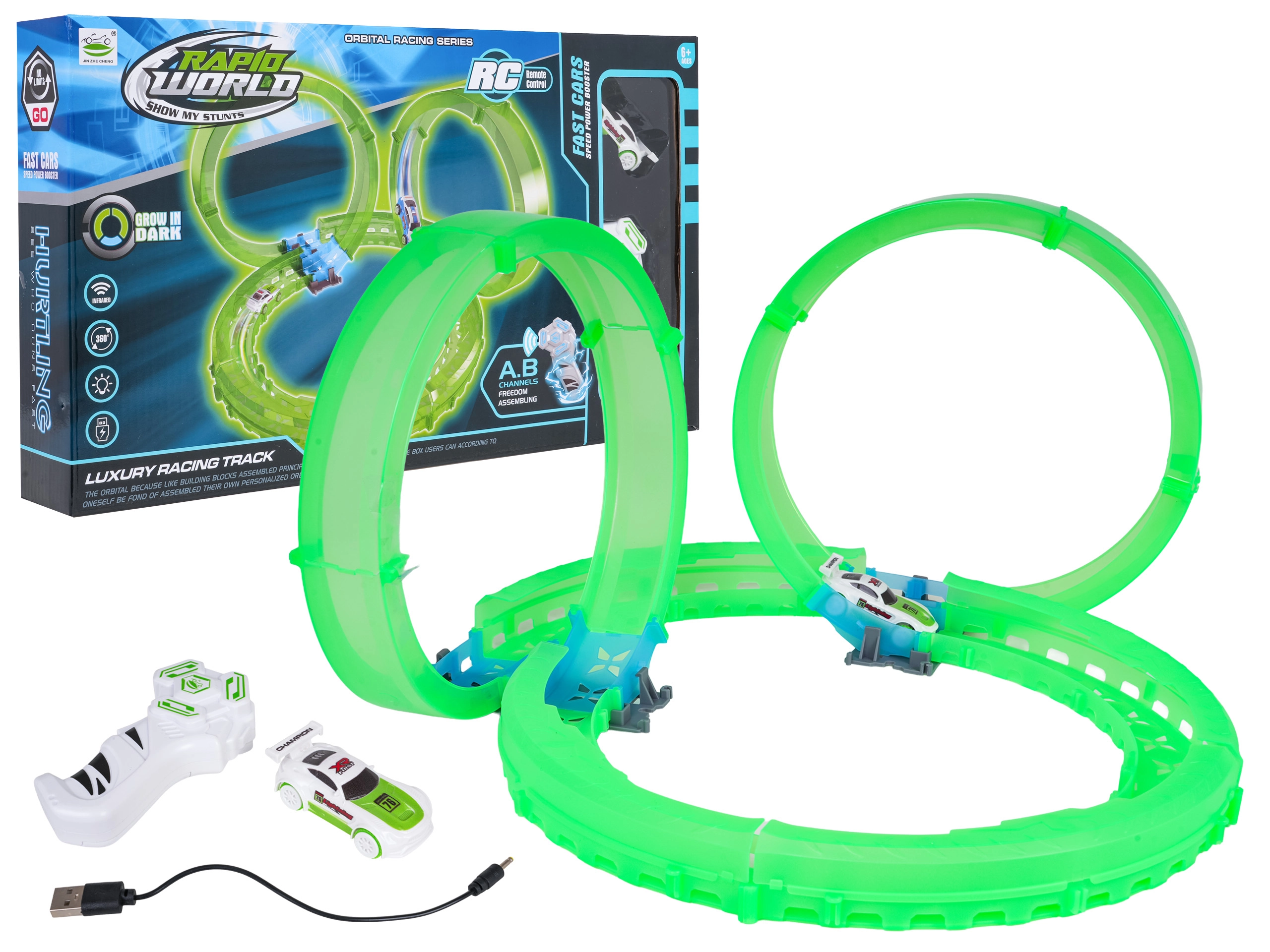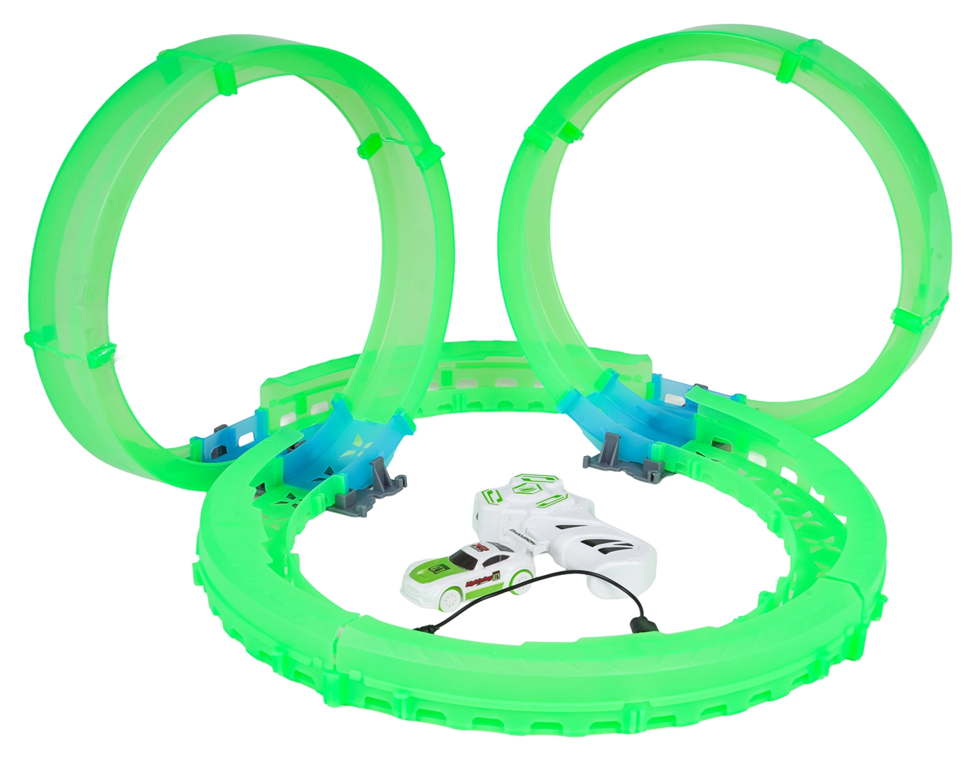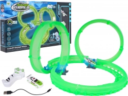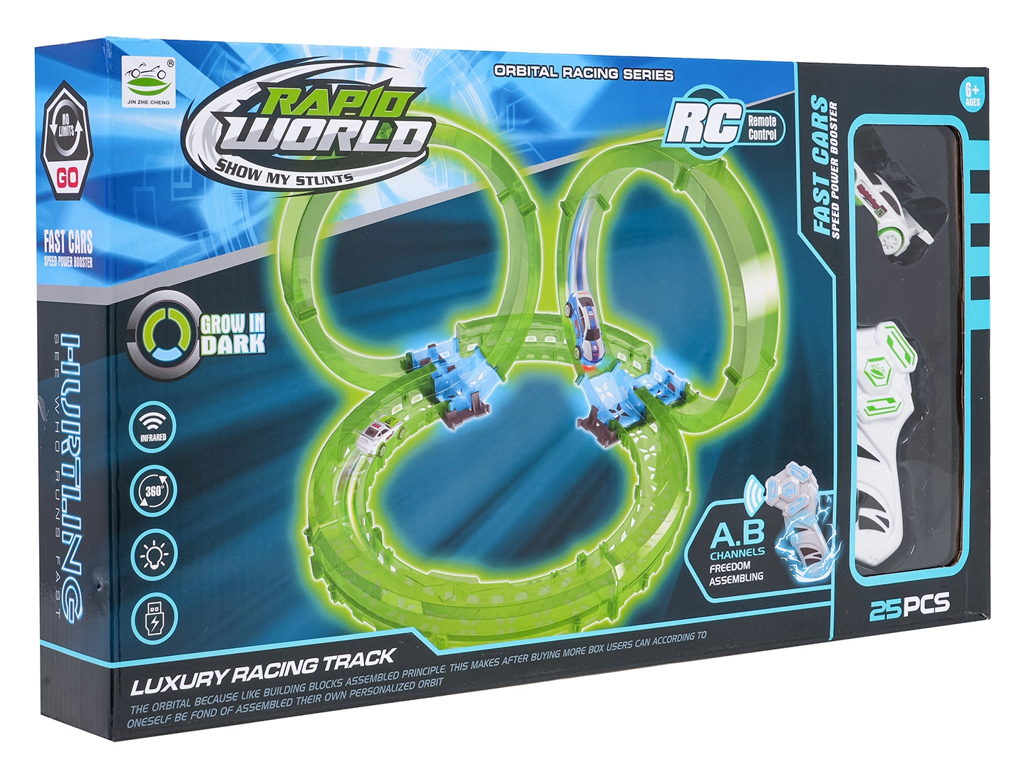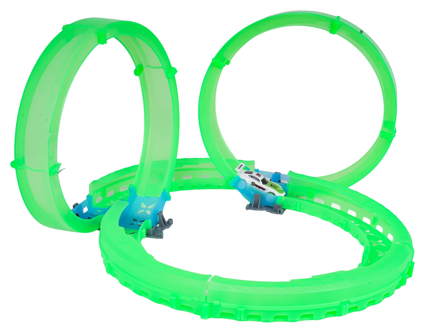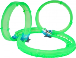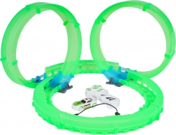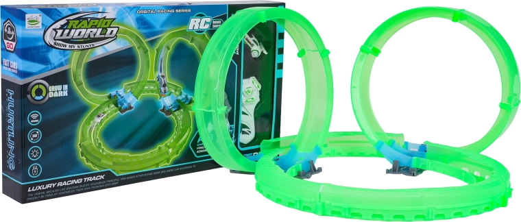 Ova kompaktna trkaća staza s sjajećim, prozirnim dijelovima donosi dinamičnu vožnju s atraktivnim svjetlosnim efektima. Autić s LED osvjetljenjem juri kroz petlje i zavoje te stvara efektan trag u mraku. Zahvaljujući daljinskom upravljanju brzina i smjer su vam uvijek pod kontrolom.