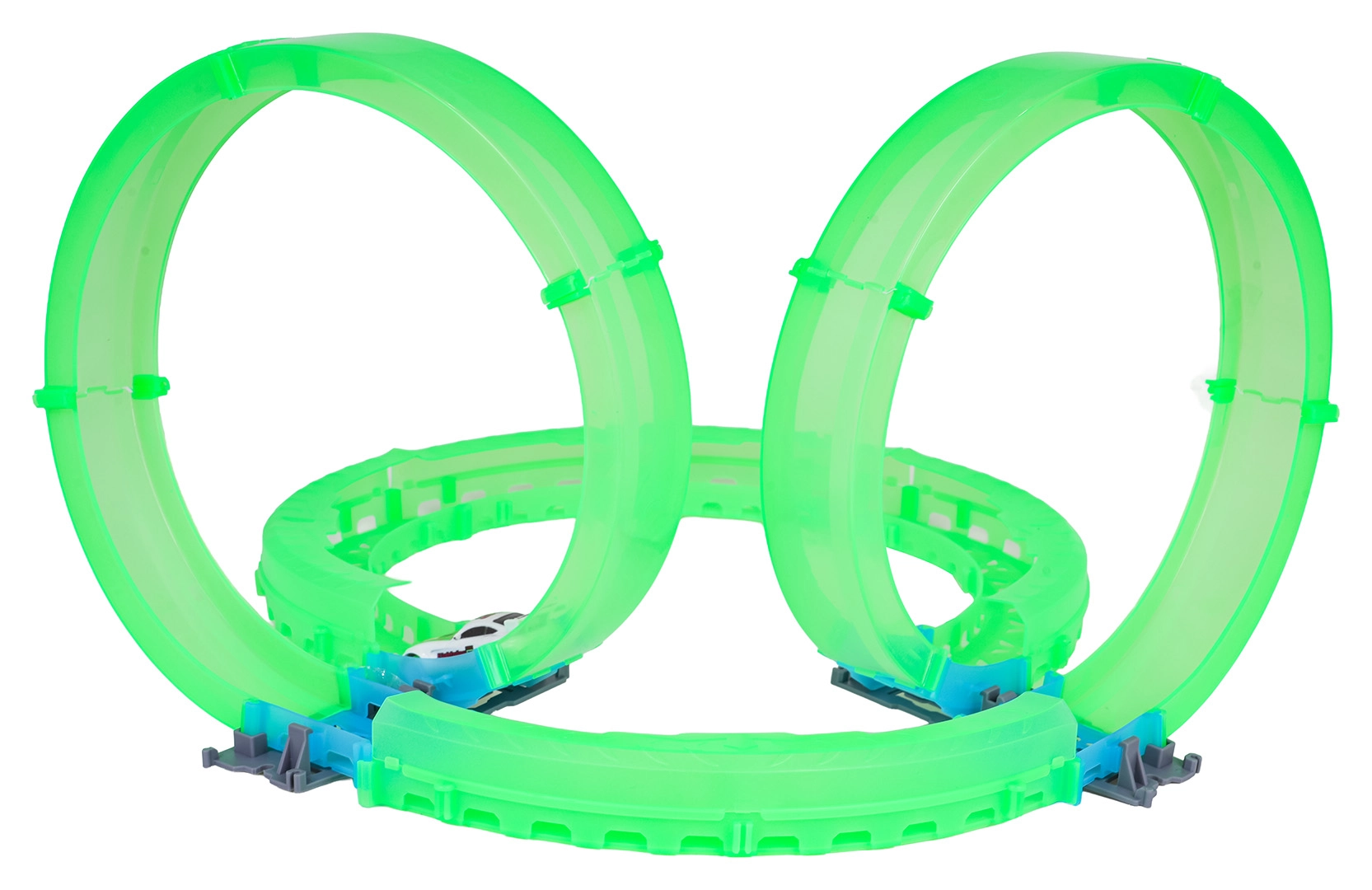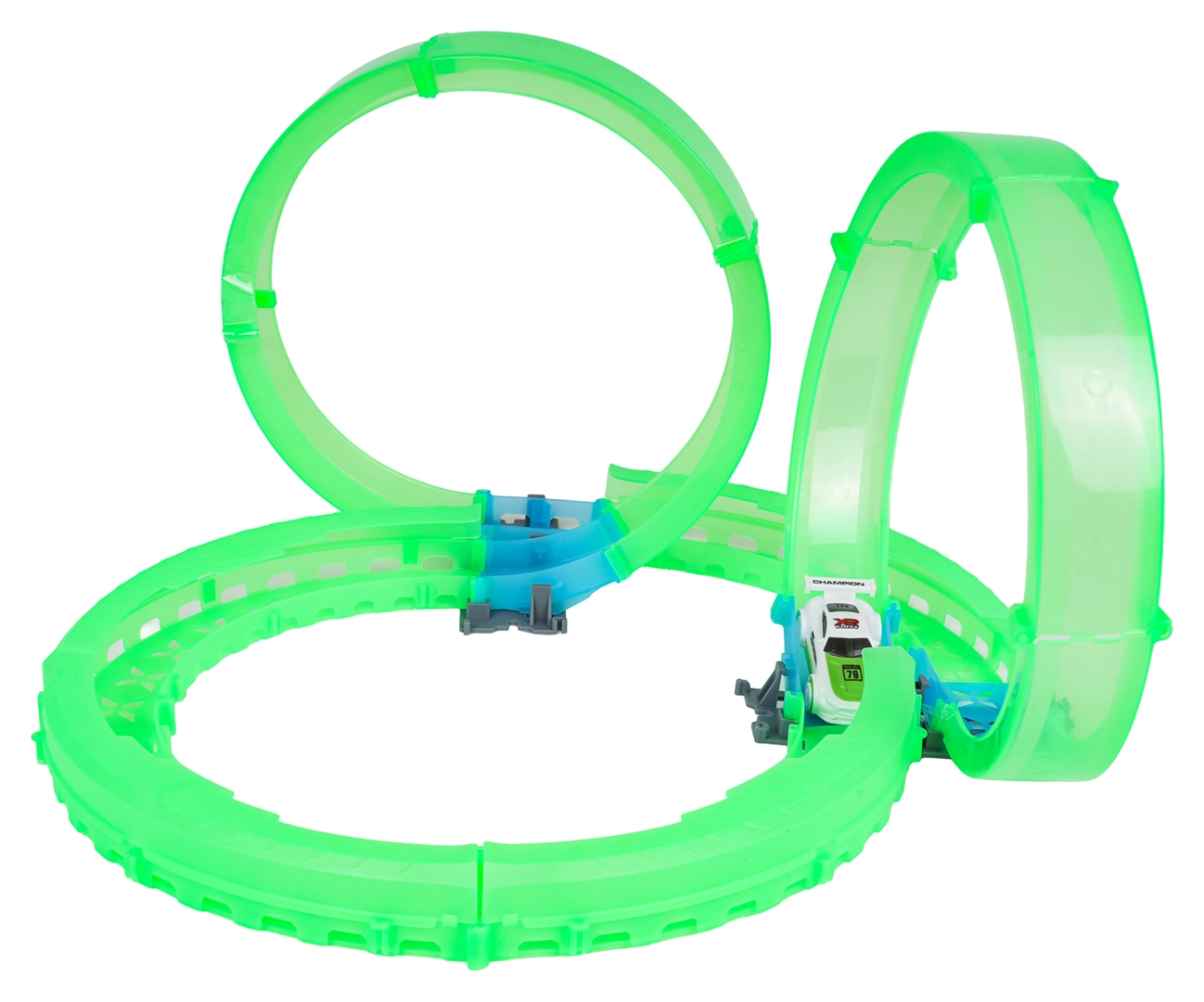 Prozirni dijelovi staze svijetle u mraku i omogućuju efektne vožnje pune petlji i zavoja.