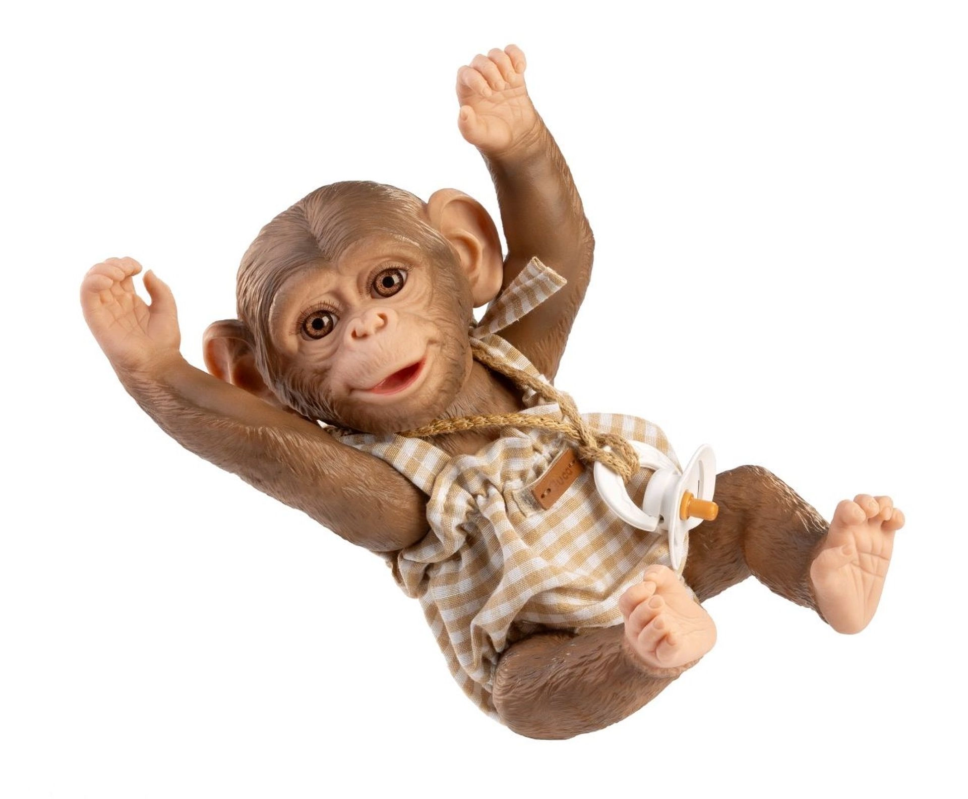 Priuštite svom majmunčiću bebi REBORN novi izgled s ovim pomno izrađenim setom. Nježni karirani romper s podesivim naramenicama i elastičnim rubovima osigurava lako odijevanje i udobno nošenje. Dio seta je i stilski duduš na vrpci koji upotpunjuje sladak izgled i potiče maštovitu igru.