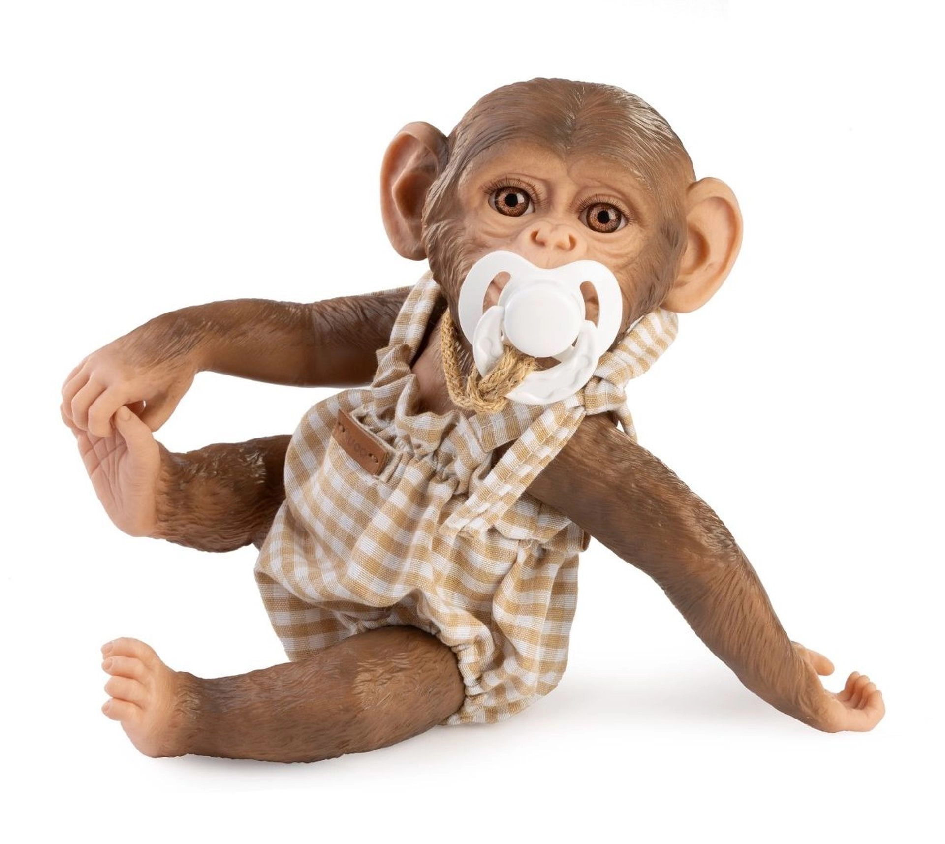 Stilski dvodijelni set za majmunčića bebu REBORN veličine 32 cm sadrži udobnu odjeću i duduš kao simpatičan dodatak. Ručna izrada u Španjolskoj jamči kvalitetnu izradu i fine detalje koji će oduševiti djecu i kolekcionare.