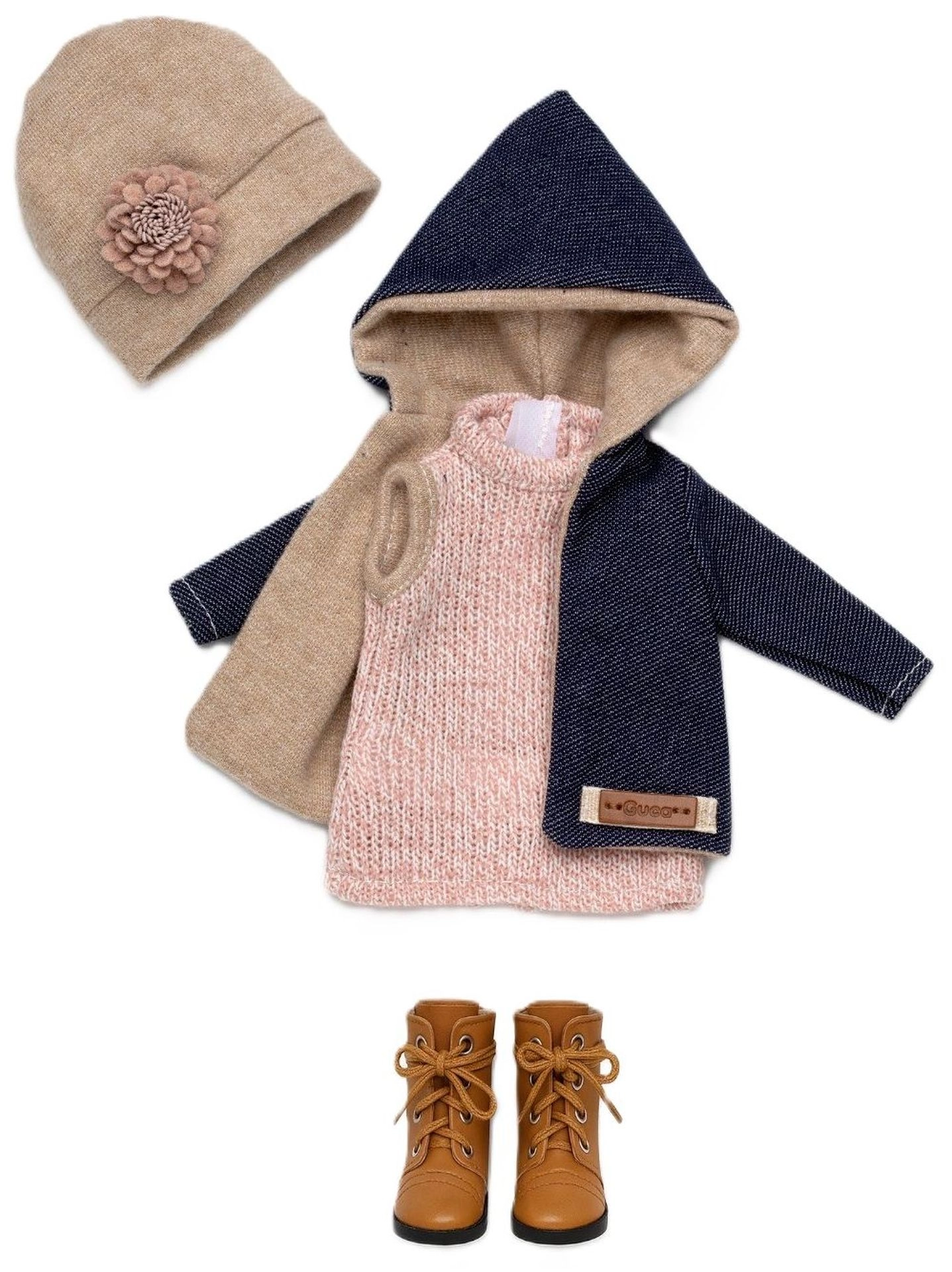 Priuštite svojoj lutki PENELOPE novi outfit koji spaja toplinu, udobnost i elegantan stil. Set sadrži pletene komade i kaputić s kapuljačom, zahvaljujući kojima će lutka biti spremna i za šetnju i za izlaganje na polici. Precizna izrada i realistčni detalji oduševit će male i velike ljubitelje lutaka.