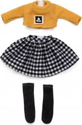 Priuštite svojoj lutki Penelope veličine 34 cm nov, bezvremenski outfit. Set kombinira topli pleteni džemper u gorušičastoj boji, šik crno-bijelu kariranu suknju s elastičnim pojasom i tamne čarape do koljena. Zahvaljujući kvalitetnim materijalima i pažljivoj izradi, odjeća se lako oblači i zadržava oblik.