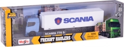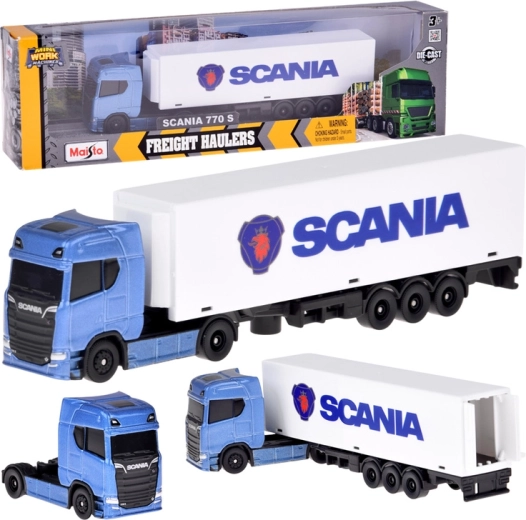 Otkrijte precizno izrađen model Maisto Freight Haulers s metalnom kabinom i realističnim detaljima od maske do SCANIA amblema na bijeloj prikolici. Plava kabina i bijela kutijasta prikolica s logom izgledaju atraktivno i na polici i na podu dječje sobe.