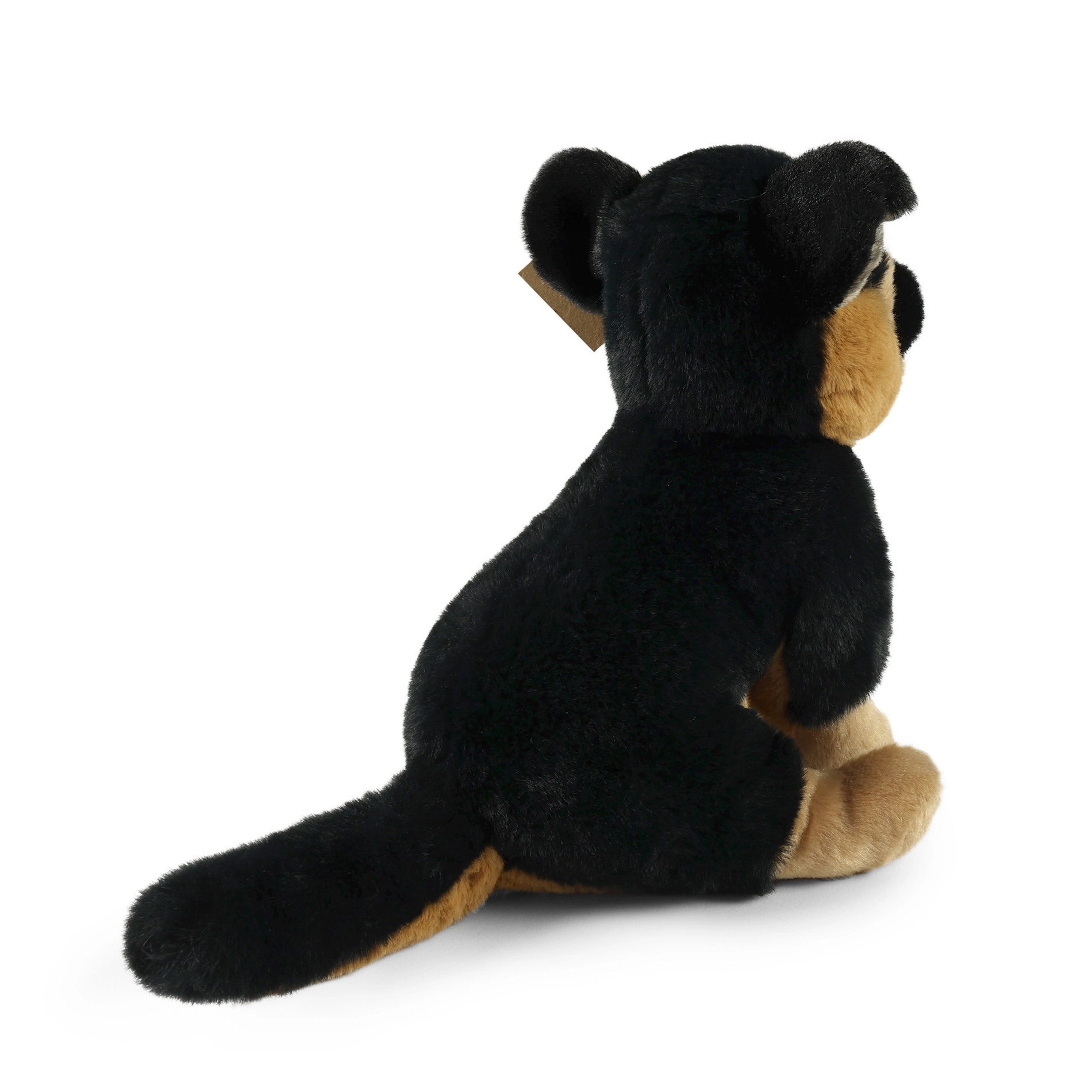 Ovaj sjedeći njemački ovčar očarat će mekanim plišom, preciznom izradom i prirodnim izgledom. Zahvaljujući ručnom radu djeluje kao živ i idealan je za maženje, igru ili kao dekoracija dječje sobe.