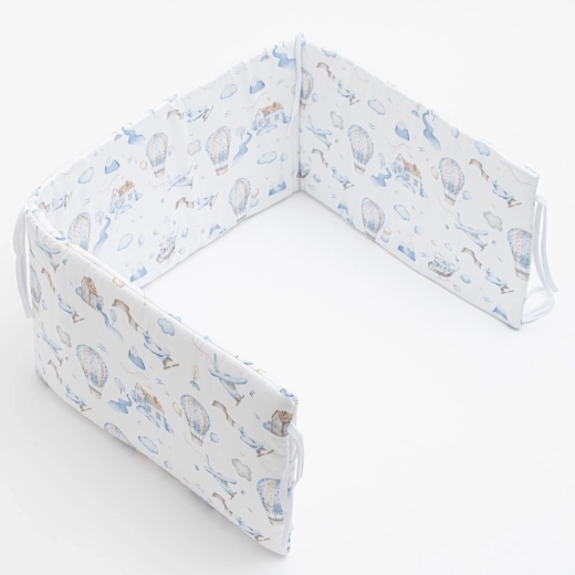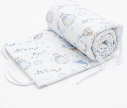 Praktična zaštitna obloga za krevetić NEW BABY Romance s nježnim printom oblaka i pustolovina osigurava vašoj bebici sigurnost i udobnost. Izrađena je od meke 100% pamuka s hipoalergenim poliesterskim punjenjem te se lako pričvršćuje pomoću čvrstih vrpci. Duljina oko 150 cm savršeno pristaje većini dječjih krevetića.