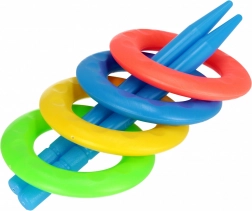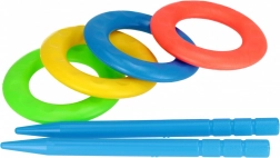 Zabavna igra s letećim prstenima za male i velike. Set sadrži 2 štapa i 4 prstena za bacanje i pogađanje cilja. Idealno za vrt, igralište i dom. Dimenzije pakiranja su 16 × 42 × 11 cm. Razvija koordinaciju, preciznost i motoriku, sjajna je za obiteljsku zabavu i prikladna za djecu od 3 godine.