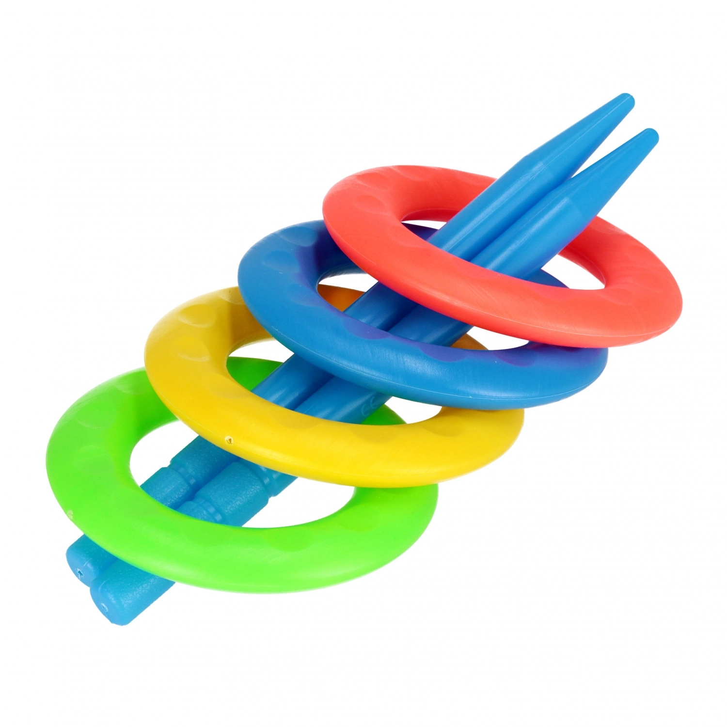 Sadržaj pakiranja čine 2 štapa i 4 prstena, pa se lako mogu pripremiti natjecanja pojedinaca i timova. Zahvaljujući kompaktnim dimenzijama set se lako nosi u vrt, park ili na odmor.