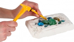 Ovaj zabavni STEM set donosi autentično iskustvo iskapanja. Djeca postupno odvajaju gipsani blok i nježno kistom otkrivaju šarene kamenčiće i školjkice. U kompletu je sve što im treba – sigurni plastični alati i jasan priručnik.