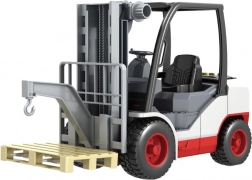 Otkrijte detaljno izrađen viličar 1:12 koji vjerno oponaša stvarne industrijske strojeve. Kombinacija bijele, crvene i sive boje, izražen profil guma i realistične vilice s paletom čine ovaj model atraktivnom igračkom i kolekcionarskim primjerkom.
