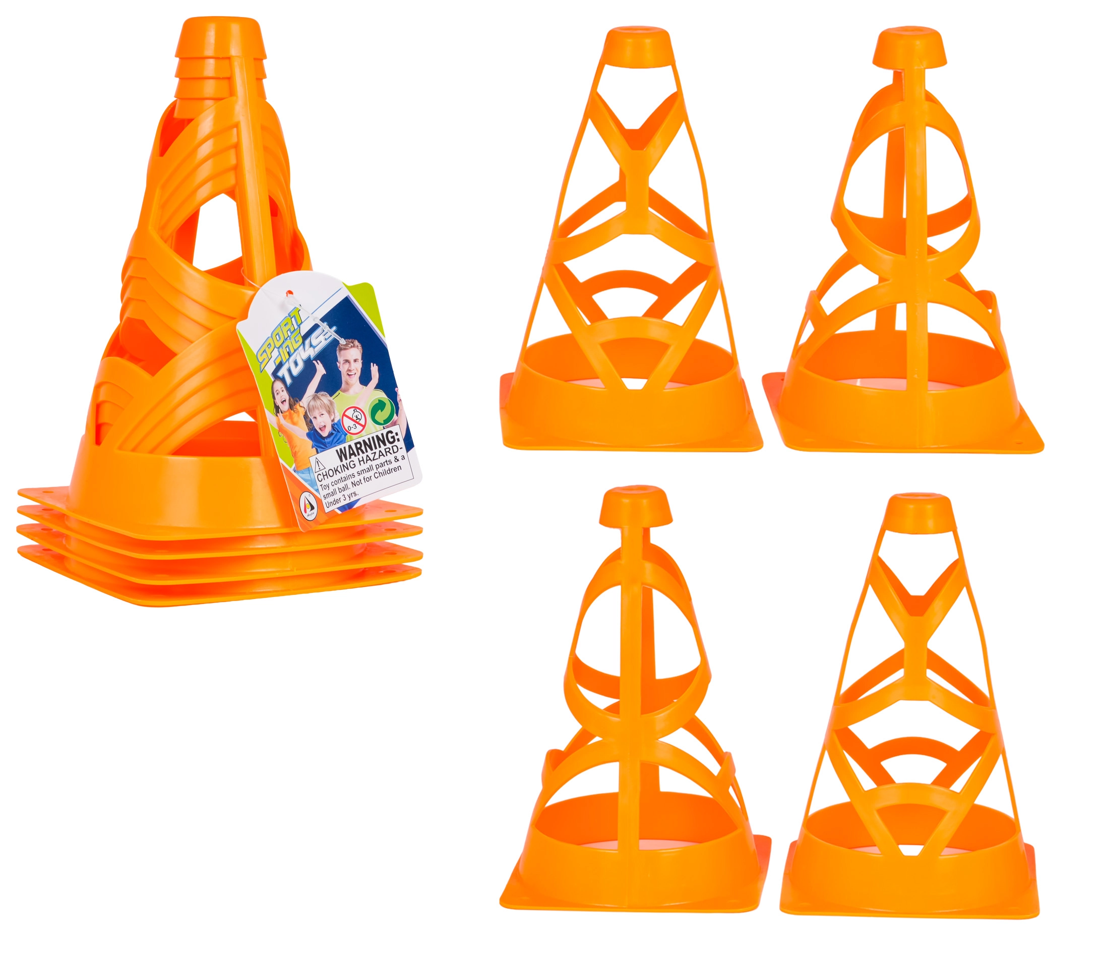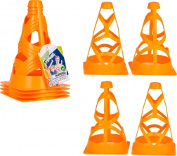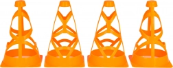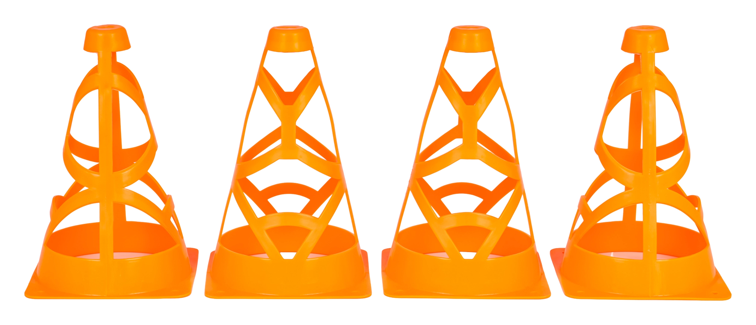 Set od četiri narančasta čunja za djecu od 3 godine i odrasle sportaše. Lagani, stogivi i zahvaljujući jarko narančastoj boji odlično vidljivi. Otvorena konstrukcija s rupama za učvršćivanje osigurava stabilnost i pri vjetru. Prikladni za nogometne treninge, agility vježbe i označavanje zona na igralištu ili dvorištu.