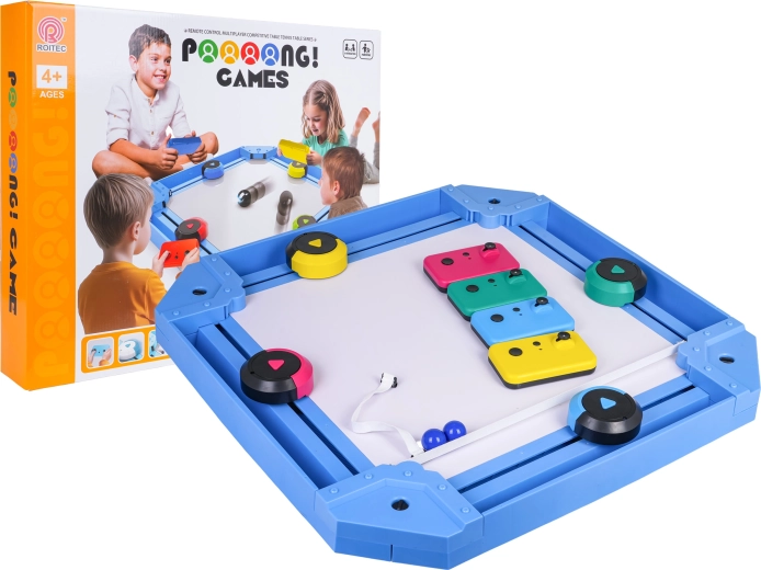 Pokrenite kućni turnir! Stolna akcijska igra upravljana putem 2,4 GHz upravljača nudi uzbudljive dvoboje za 2 ili 4 igrača. Cilj je precizno ciljati, pametno braniti i ne dopustiti da loptica padne u vlastiti gol. Zahvaljujući jednostavnim pravilima i intuitivnom upravljanju, igru će odmah zavoljeti i djeca i odrasli.