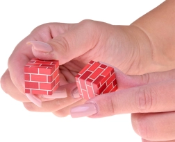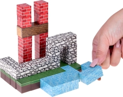Raznolik miks kocaka s tiskovima trave, vode, cigle, kamena i drva omogućuje slaganje kuća, terena i stabala – točno prema vašim zamislima.