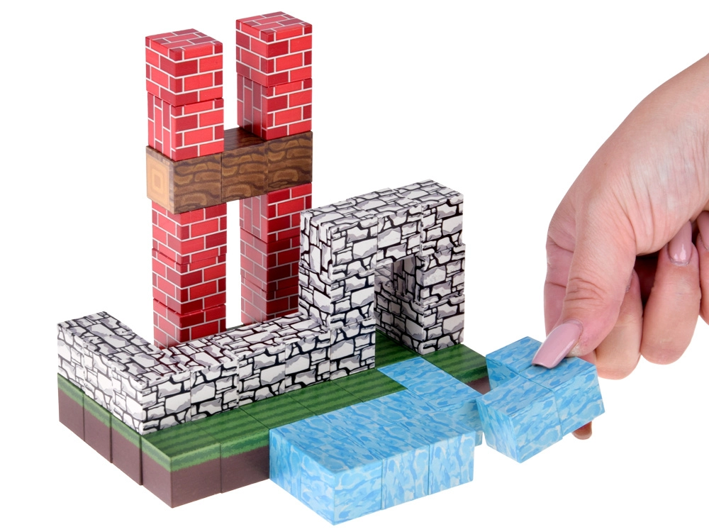 Piksel magnetske kocke potiču kreativnost, maštu i finu motoriku i djece i odraslih. Svaka kocka ima realističan tisak (trava, voda, cigla, kamen, drvo), pa lako stvarate šarene scene od kućica i potočića do stabala i terasastog terena.