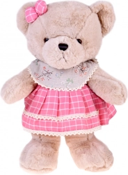 Medo Zuzia očarat će nježnim bež krznom, ružičastom mašnicom na uhu i haljinom na kockice s čipkastim rubom. Zahvaljujući mekom plišu izvrsno je prikladan za maženje i umirivanje prije spavanja, a ujedno je i šarmantna dekoracija dječje sobe.