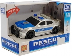 Srebrni policijski automobil u mjerilu 1:20 oduševit će male ljubitelje akcije. Zahvaljujući svjetlosnim i zvučnim efektima, trima tipkama na krovu i inercijskom pogonu djeca će uživati u realističnojoj igri intervencije. U pakiranju su baterije, tu je i otvarajući stražnji prtljažnik te sigurnosna CE certifikacija.