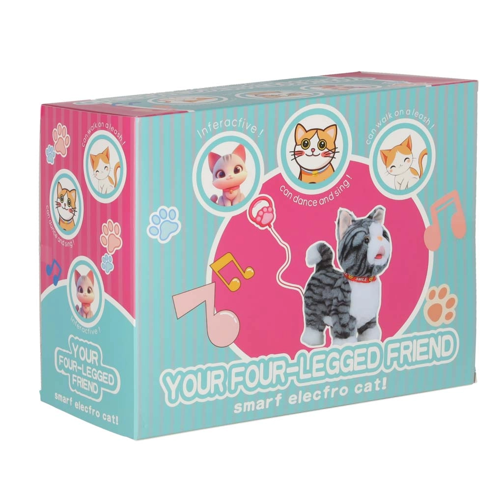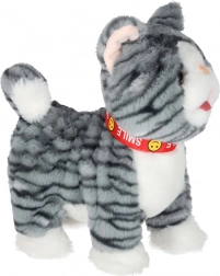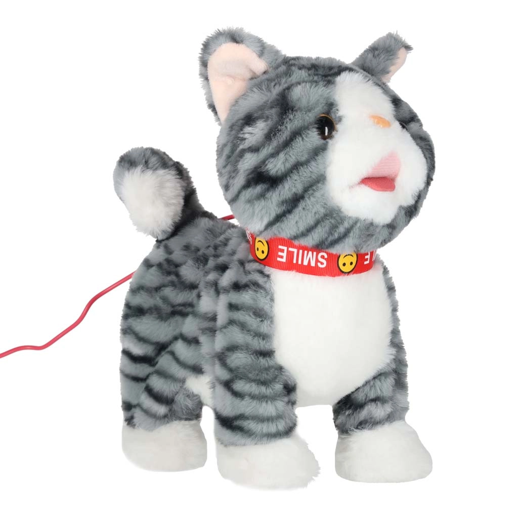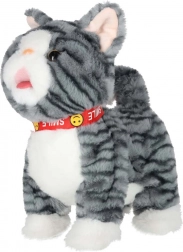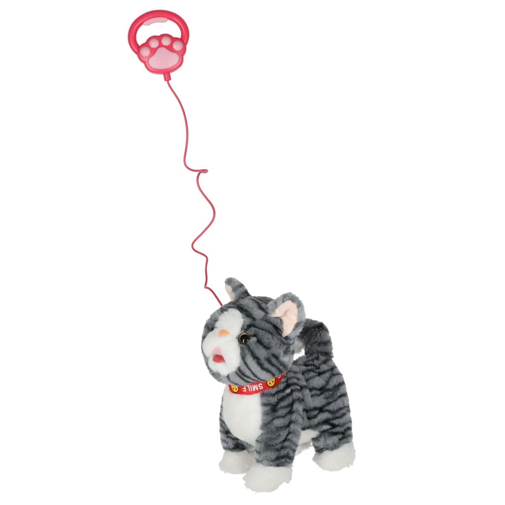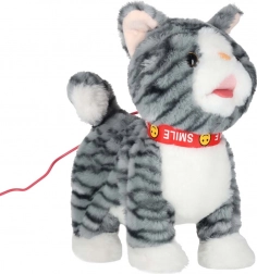 Slatka interaktivna plišana mačkica na povodcu donosi djeci sate zabave. Nakon pritiska gumba kreće naprijed, mijauče, maše repom i pomjera jezičak. Mekano sivo prugasto krzno mami na maženje, a igra ujedno uči brizi za kućnog ljubimca. Idealan poklon za djecu od 3 godine naviše.