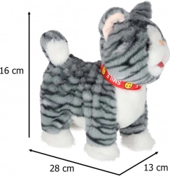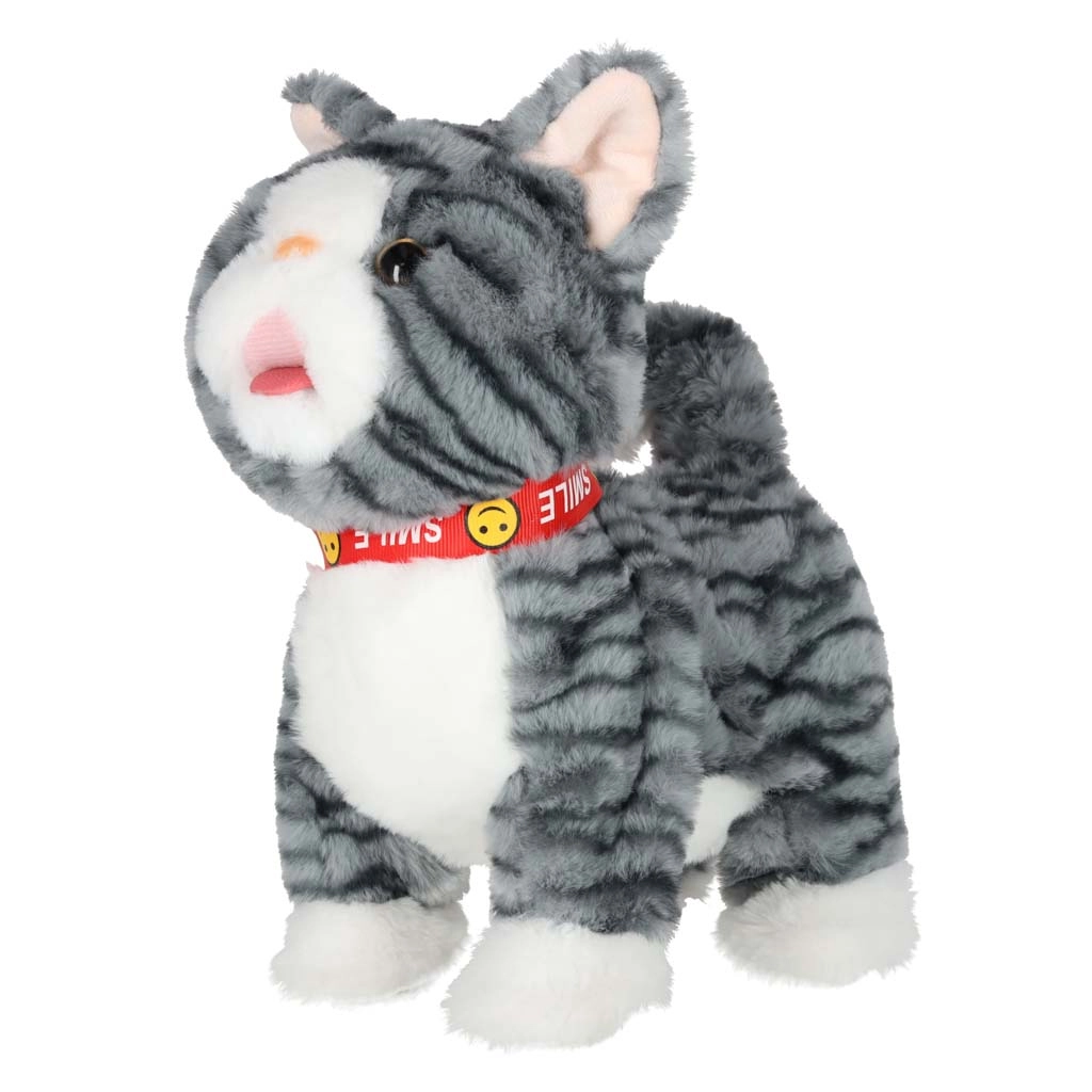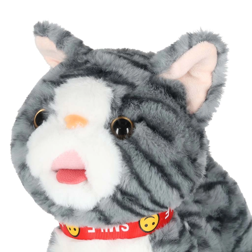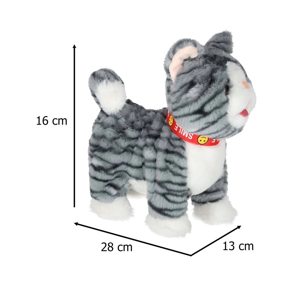Slatka interaktivna plišana mačkica na povodcu donosi djeci sate zabave. Nakon pritiska gumba kreće naprijed, mijauče, maše repom i pomjera jezičak. Mekano sivo prugasto krzno mami na maženje, a igra ujedno uči brizi za kućnog ljubimca. Idealan poklon za djecu od 3 godine naviše.