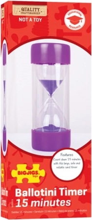 Veliki pješčani sat Bigjigs Toys savršeno je pomagalo za određivanje vremena aktivnosti poput učenja ili čišćenja. Unutarnja staklena posuda za pijesak zaštićena je čvrstom plastičnom omotnicom. Zadovoljava suvremene europske sigurnosne norme.