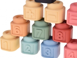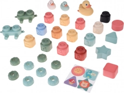 Ovaj svestrani edukativni set spaja slaganje, razvrstavanje i poticajnu senzornu igru. Mekane, stlačive kocke sa sigurno zaobljenim rubovima dobro leže u ruci, blage su prema desnima, a neki elementi pri pritisku nježno zaškripaju – to budi dječju znatiželju i produljuje usredotočenu igru.