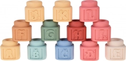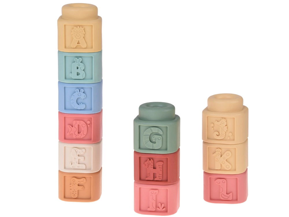 Nježan, stlačiv i netoksičan materijal odlično leži u ruci i blag je prema desnima – kocke mogu poslužiti i kao grickalica. Zaobljeni rubovi povećavaju sigurnost pri igri.