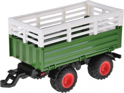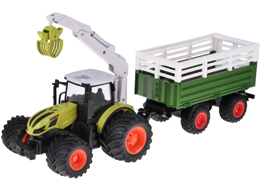Upravljač s frekvencijom 2,4 GHz osigurava stabilno upravljanje bez smetnji, tu su DEMO način i mogućnost uključivanja/isključivanja svjetala. Prikolica je odvojiva, ima kipajuću korpu te otvarajuće bočne stranice i stražnji poklopac za lako rukovanje teretom. U pakiranju je sve potrebno, uključujući punjivu bateriju i USB kabel – dovoljno je umetnuti baterije u upravljač i krenuti na farmu.