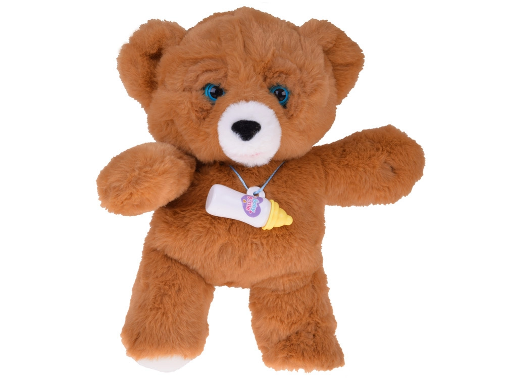 Preslatki interaktivni medo mekani je plišani prijatelj koji reagira poput bebe. Nakon hranjenja bočicom ispušta zvukove pijenja, smije se, plače, mrmlja, šalje pusice te zatvara i otvara oči. Zahvaljujući kompaktnoj veličini dijete ga može ponijeti svuda i uživati u nježnoj, poticajnoj igri punoj brige.