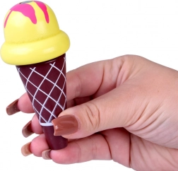 U pakiranju se nalazi 5 sladoleda na štapiću i 3 korneta s kuglicama. Djeca mogu miješati okuse, slagati kuglice i posluživati “kupce” kao u pravoj slastičarnici s sladoledom.
