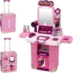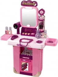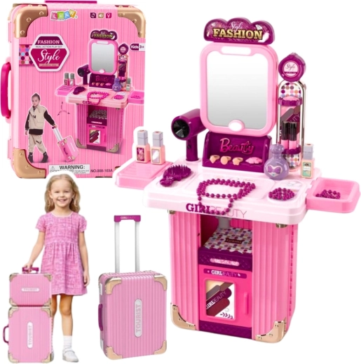 Stilska dječja toaletna 2u1 u praktičnom koferu koja se nakon rasklapanja pretvara u čarobni kozmetički stolić. Nudi osvijetljeno ogledalce, zvučne efekte i bogato pribor za igru salona ljepote. Laka i mobilna zahvaljujući kotačićima i izvlačnoj ručki, izrađena od sigurnih materijala – potiče kreativnost, maštu i finu motoriku.
