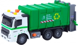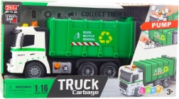 Realistični kamion za smeće u mjerilu 1:16 donosi djeci sate zabave i učenja. Nudi svjetlosne i zvučne efekte, pomični kontejner i stražnju klapnu te funkciju dizanja i pražnjenja kante. Zahvaljujući robusnoj konstrukciji i sigurnim materijalima, razvija maštu i finu motoriku te ujedno podučava razvrstavanje otpada i brigu o okolišu.