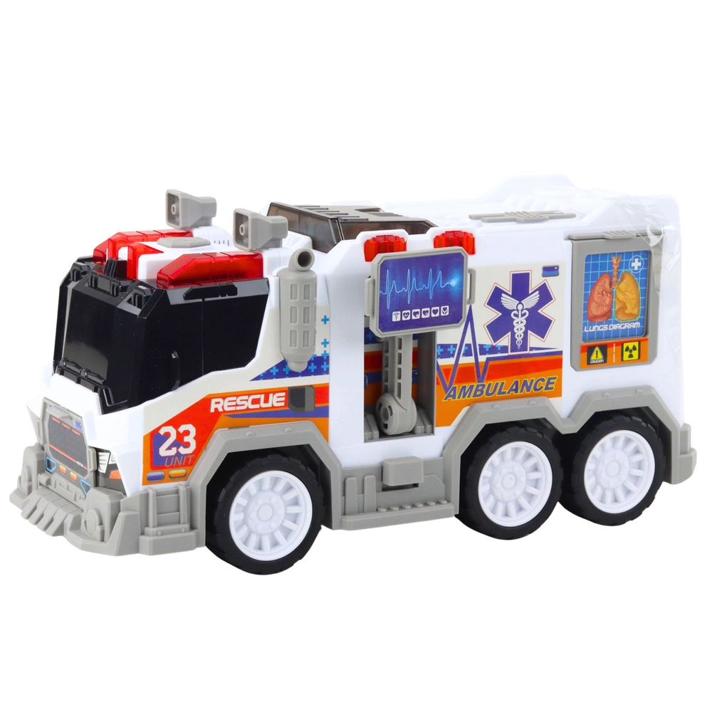 Realistična gradska hitna pomoć za djecu donosi svijet spasilaca izravno u sobu. Nudi svjetlosne i zvučne efekte, pogon na inerciju (gurni i pusti) te otvarajuća vrata i poklopce za još autentičniju igru. Izrađena od izdržljive i sigurne plastike, potiče maštu i finu motoriku.