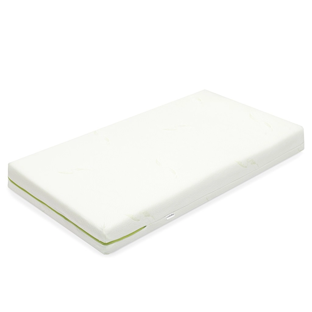 Priredite bebi zdrav san na obostranom madracu s slojevima od heljde, poliuretanske pjene i kokosa. Kombinacija materijala osigurava ortopedsku potporu, antialergijska svojstva, izvrsnu prozirnost i odvod vlage. Mekana navlaka s ekstraktom Aloe Vera nježna je prema osjetljivoj dječjoj koži i lako se održava.