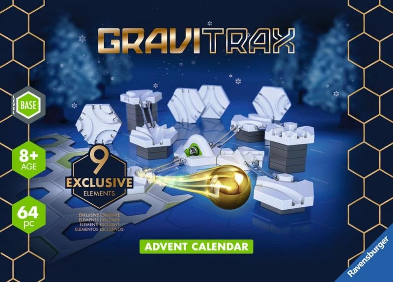 Doživite blagdansko građevno uzbuđenje s GraviTrax adventskim kalendarom! Svakog dana otvorite jedna od 24 vratašca i otkrijte nove dijelove, akcijske elemente i božićne kuglice. Kalendar će oduševiti početnike i iskusne obožavatelje te donosi čak 8 ekskluzivnih dijelova. Sve se komponente mogu koristiti i bez početnog seta.