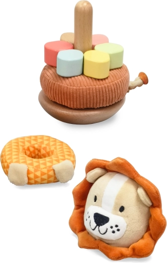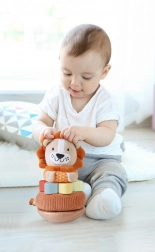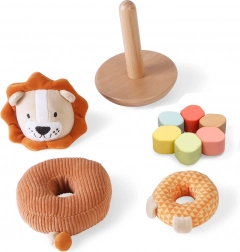 Slagalica s prstenovima Lavić spaja glatke drvene dijelove sa soft tekstilima i ugodnim plišem. Djeca slažu od najvećeg do najmanjeg te vježbaju strpljenje i logiku. Posljednji korak je duhovita plišana glavica lavića koja upotpunjuje cijelu kulu.