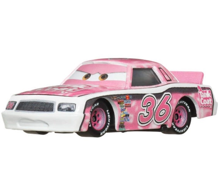 Omiljeni junaci iz filma Auta oživljavaju u precizno izrađenom metalnom modelu Tank Coat #36. Autić u mjerilu 1:55 ističe se autentičnim trkaćim grafikama, brojem 36 i logotipovima sponzora, uključujući prepoznatljivu ružičasto-bijelu kombinaciju. Zahvaljujući kvalitetnoj izradi, izvrstan je i za male trkače i za kolekcionare.