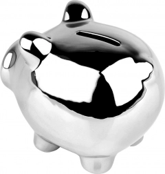 Srebrna keramička kasica u obliku praseta 11,5 × 9 cm