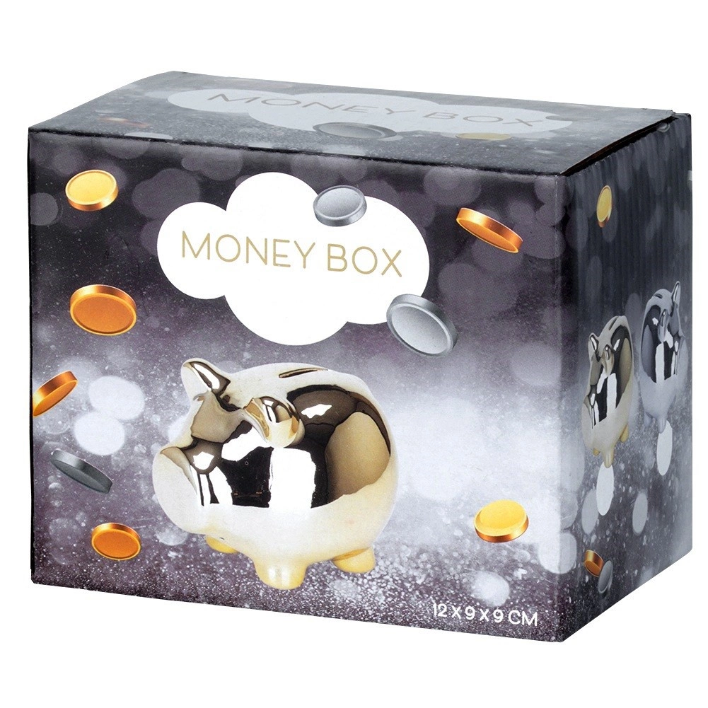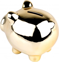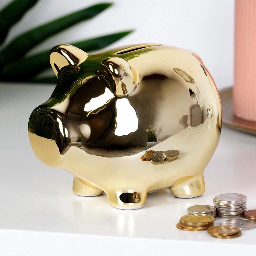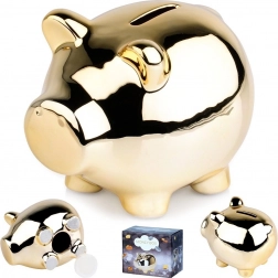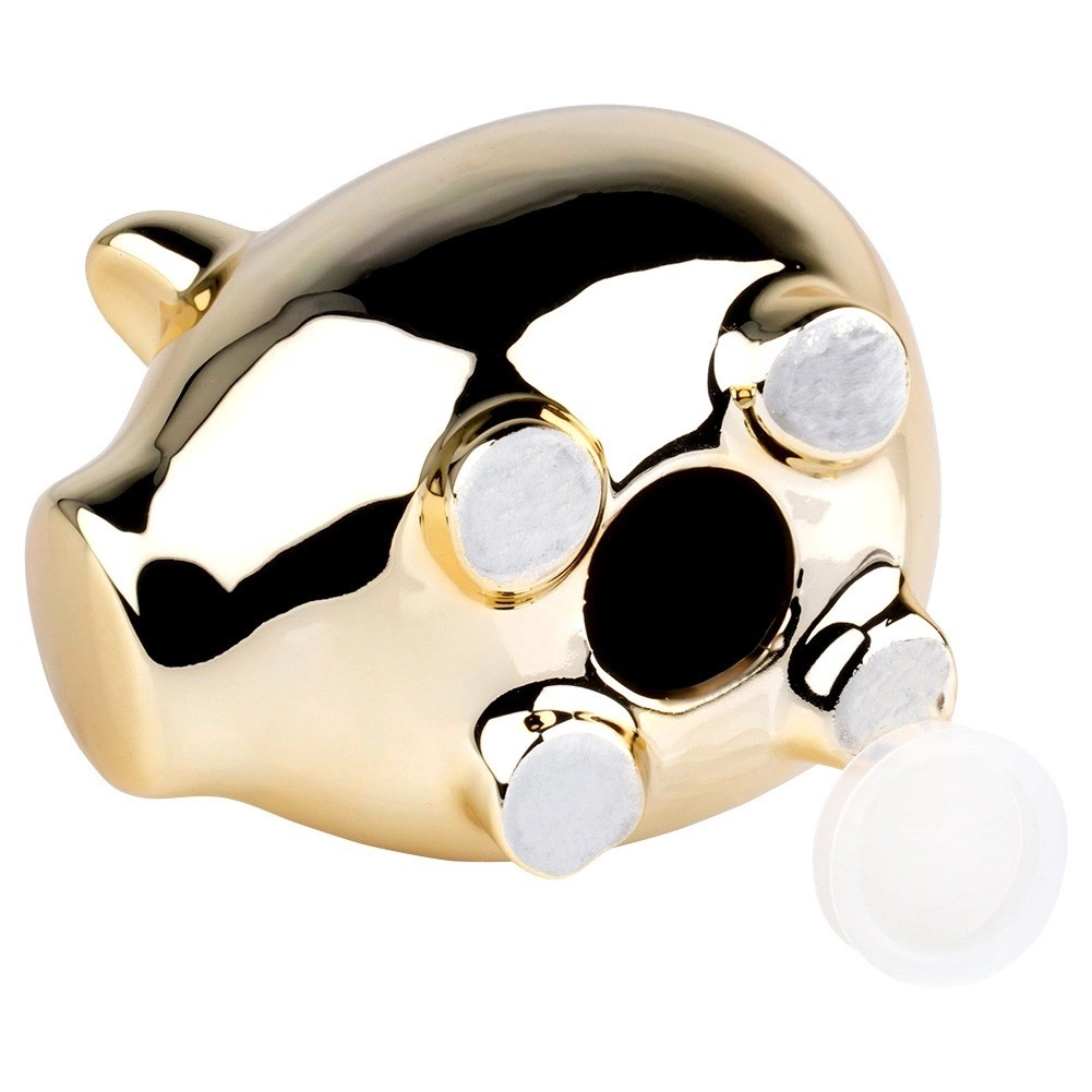 Elegantna keramička kasica u obliku klasičnog praščića spaja funkcionalnost i dizajn. Zrcalna zlatna završna obrada uljepšat će policu, stol ili dječju sobu te motivirati na svakodnevno odlaganje sitnih ušteđevina.