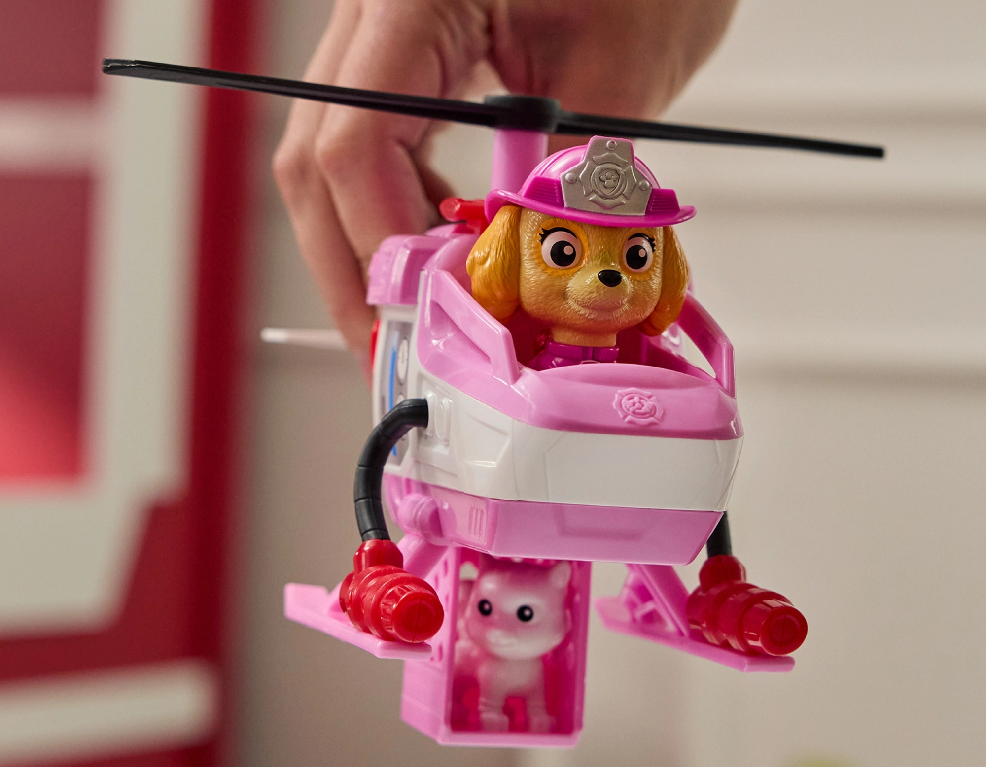Skye u ružičastoj kacigi sjeda u kokpit kao pilot. Pomična glava oživljava svaku scenu i potiče pripovijedanje priča.