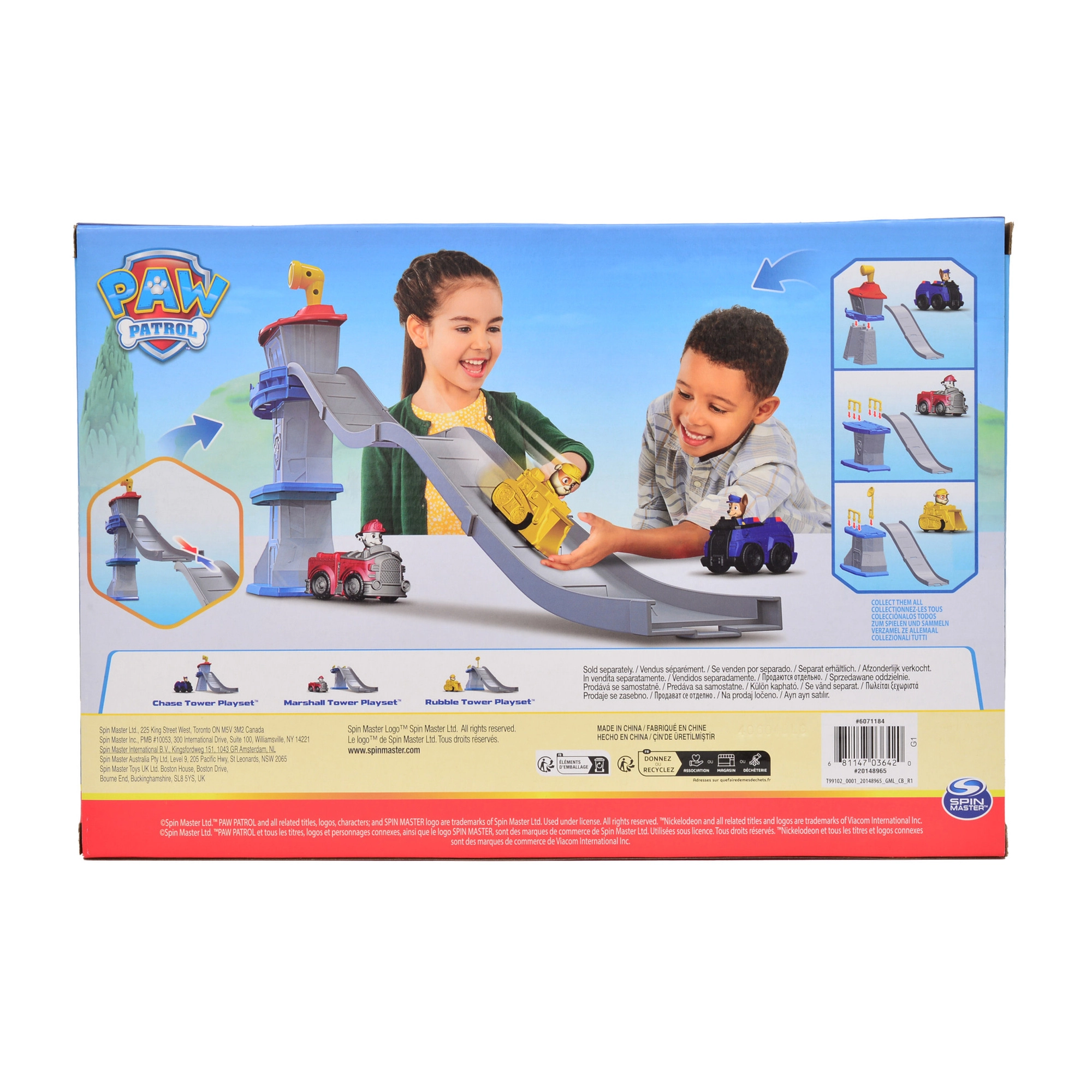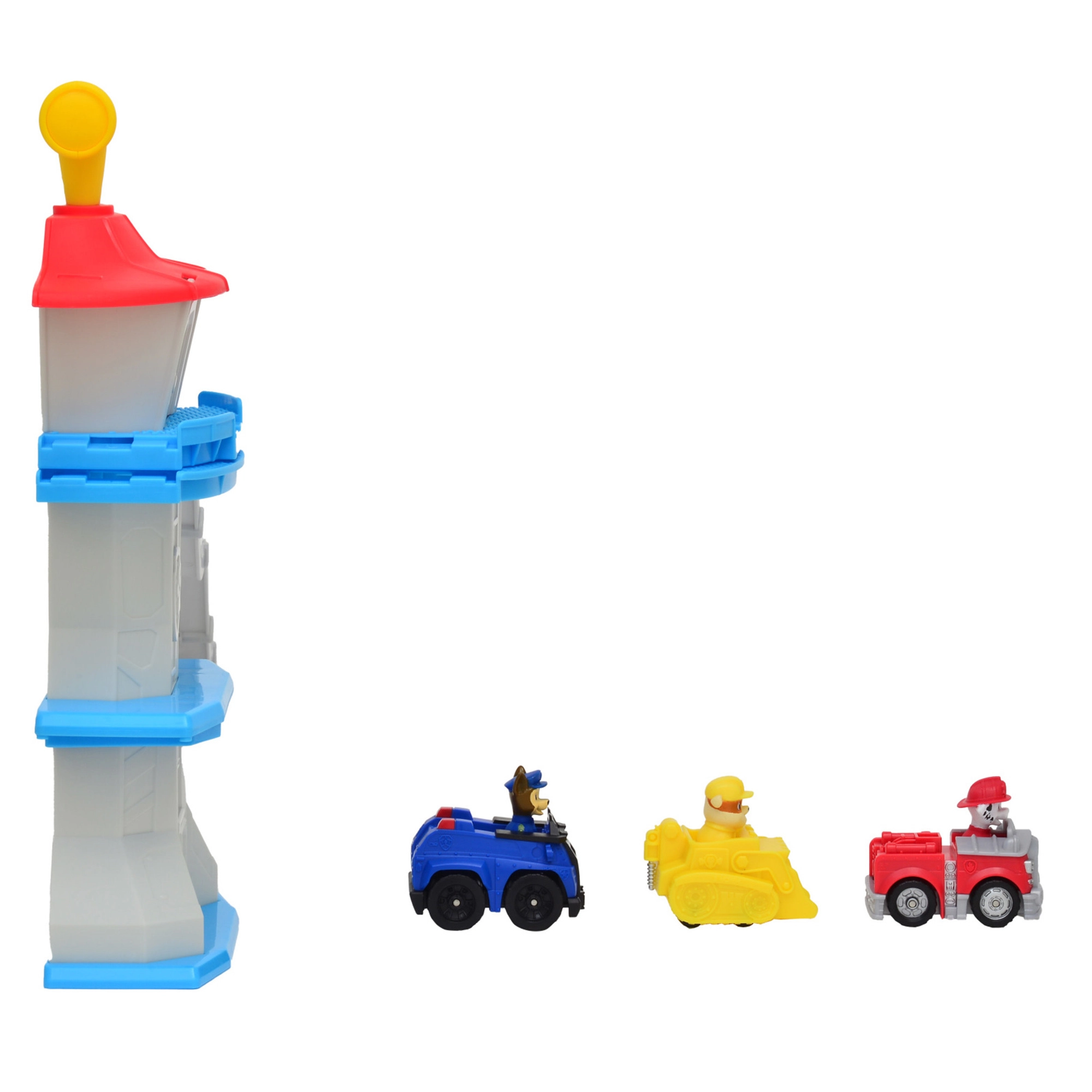 Uživajte u akciji kao u Adventure Bayu! Ovaj toranj s dugom rampom i šarenim platformama vjerno prikazuje omiljeni svijet PAW Patrol. Dio kompleta su 3 mini autića s figuricama – policijski auto Chase, vatrogasni auto Marshall i buldožer Rubble – spremni krenuti u spasilačku misiju.