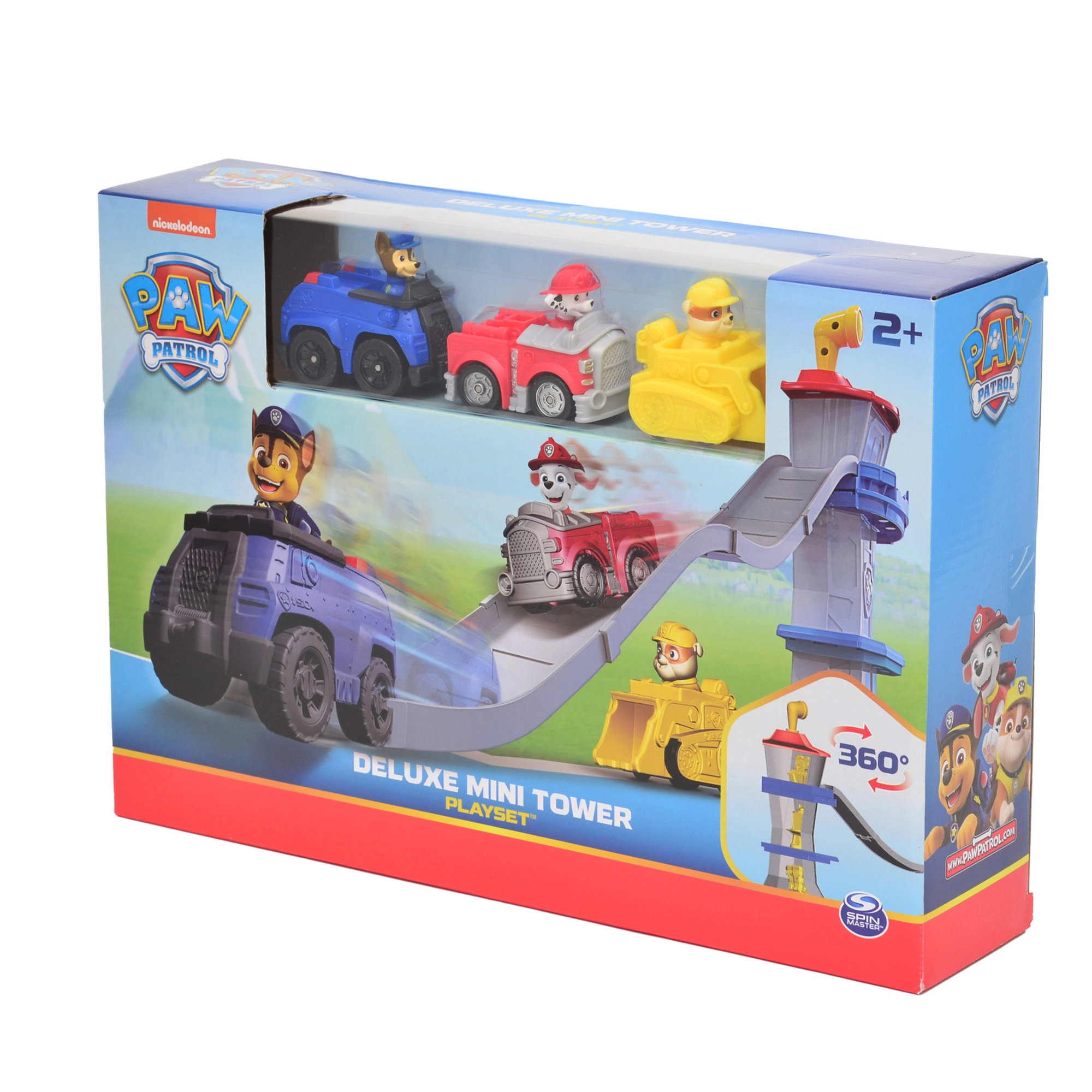 U pakiranju se nalaze plavi policijski auto Chase, crveni vatrogasni auto Marshall i žuti buldožer Rubble – spremni za trenutnu igru.