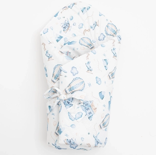 Meka i sigurna dječja povijalica New Baby Romance vašoj će bebici pružiti udobnost i toplinu od prvih dana. Izrađena je od kvalitetnog pamuka s nježnim antialergijskim punjenjem, ima praktično kopčanje na čičak i krasi je simpatičan uzorak pustolovine u oblacima. Dimenzije cca 75 × 75 cm.