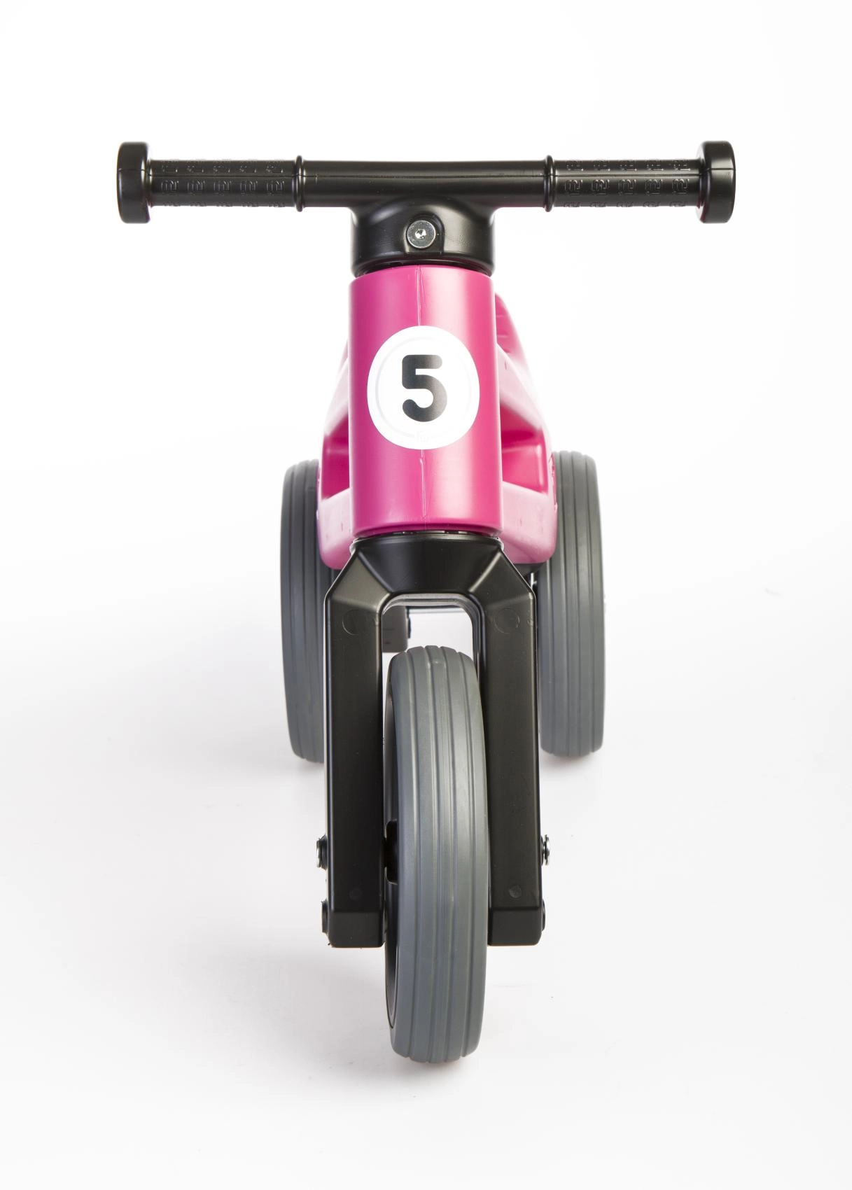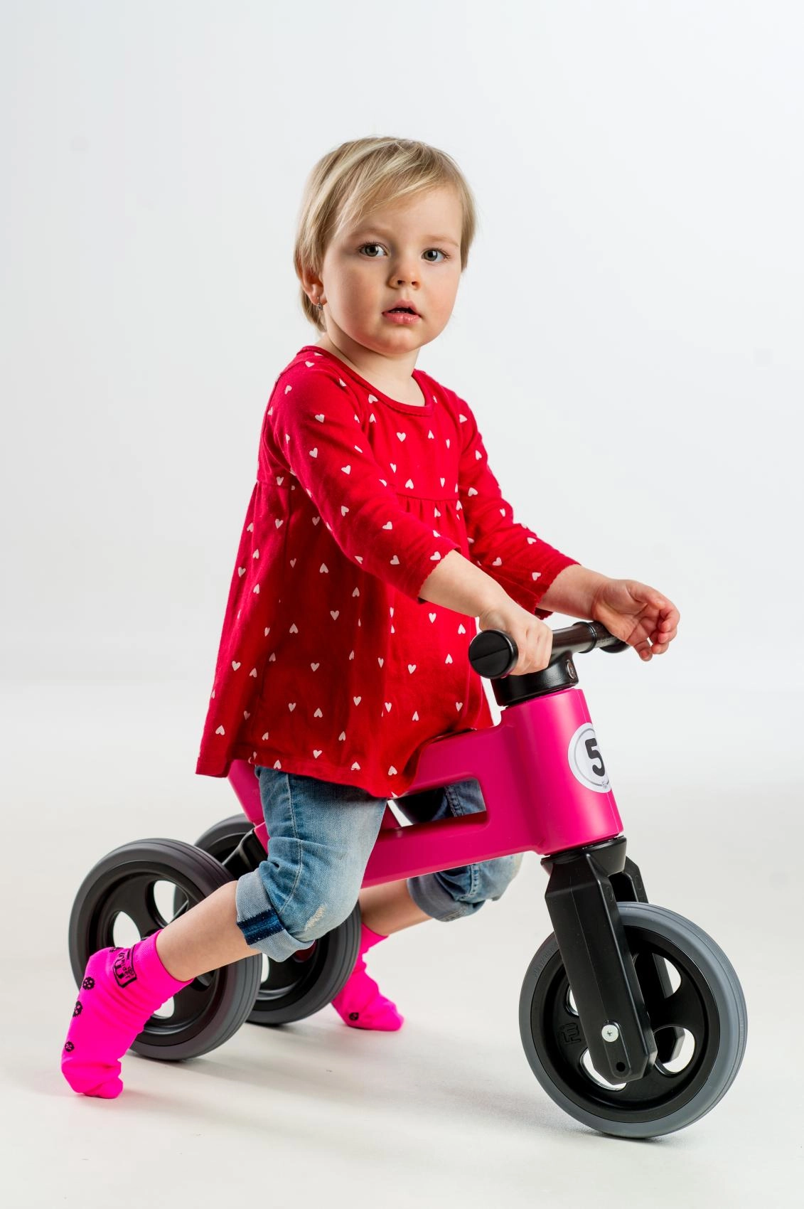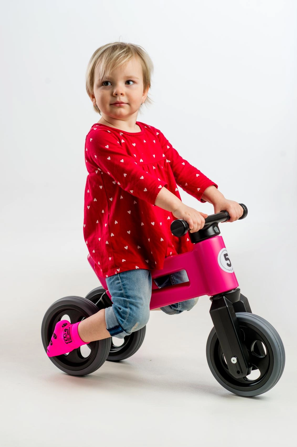 Lagana i stabilna guralica FUNNY WHEELS Rider Sport 2u1 raste s vašim djetetom – lako pretvorite tricikl u bicikl s dva kotača i podesite dve visine sjedala 28/30 cm. Tihi neklizajući pneumatici, sigurnosni detalji i nosivost 25 kg čine ovu češku guralicu idealnim izborom za vježbanje ravnoteže i koordinacije od 18 mjeseci.