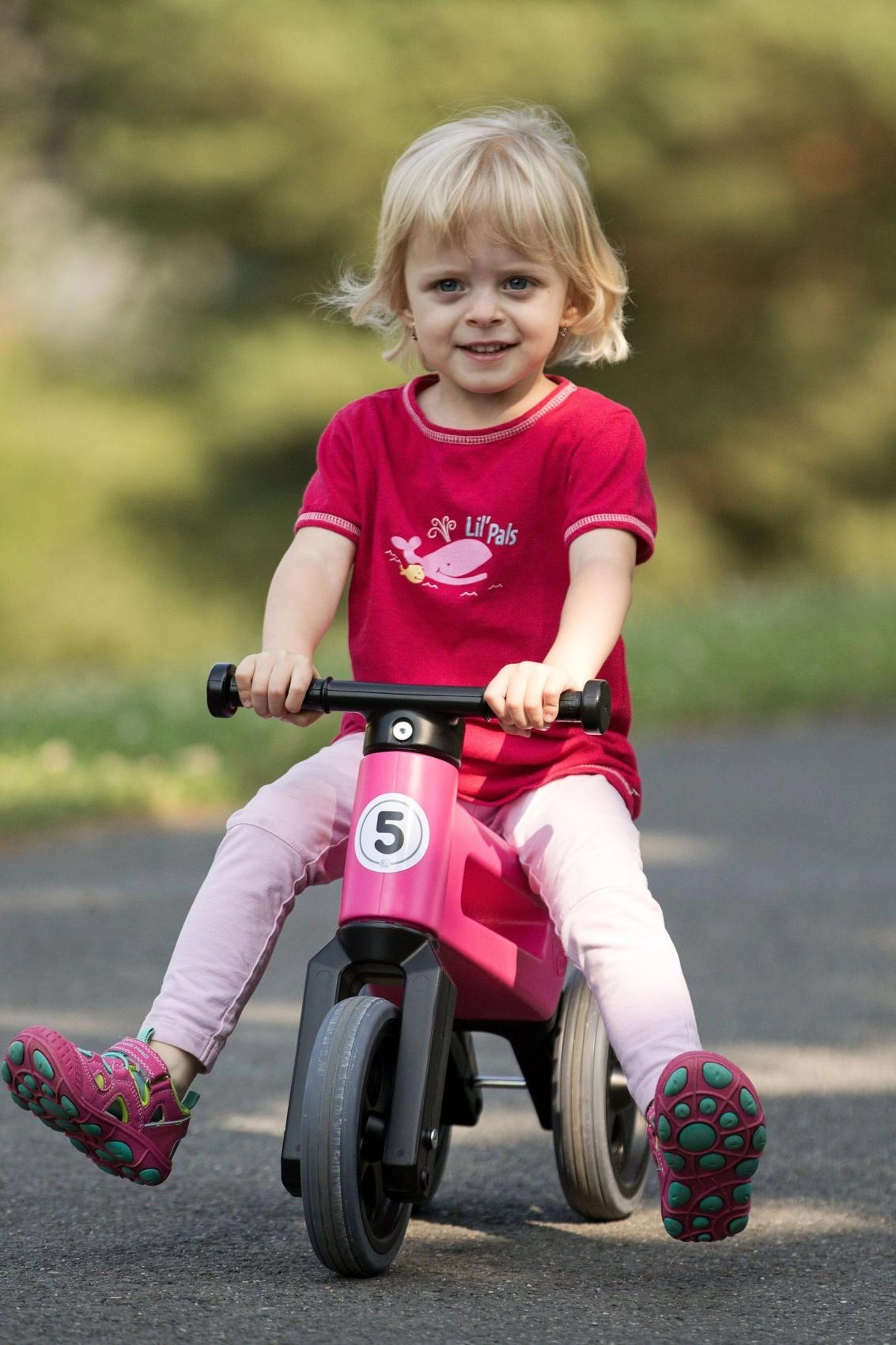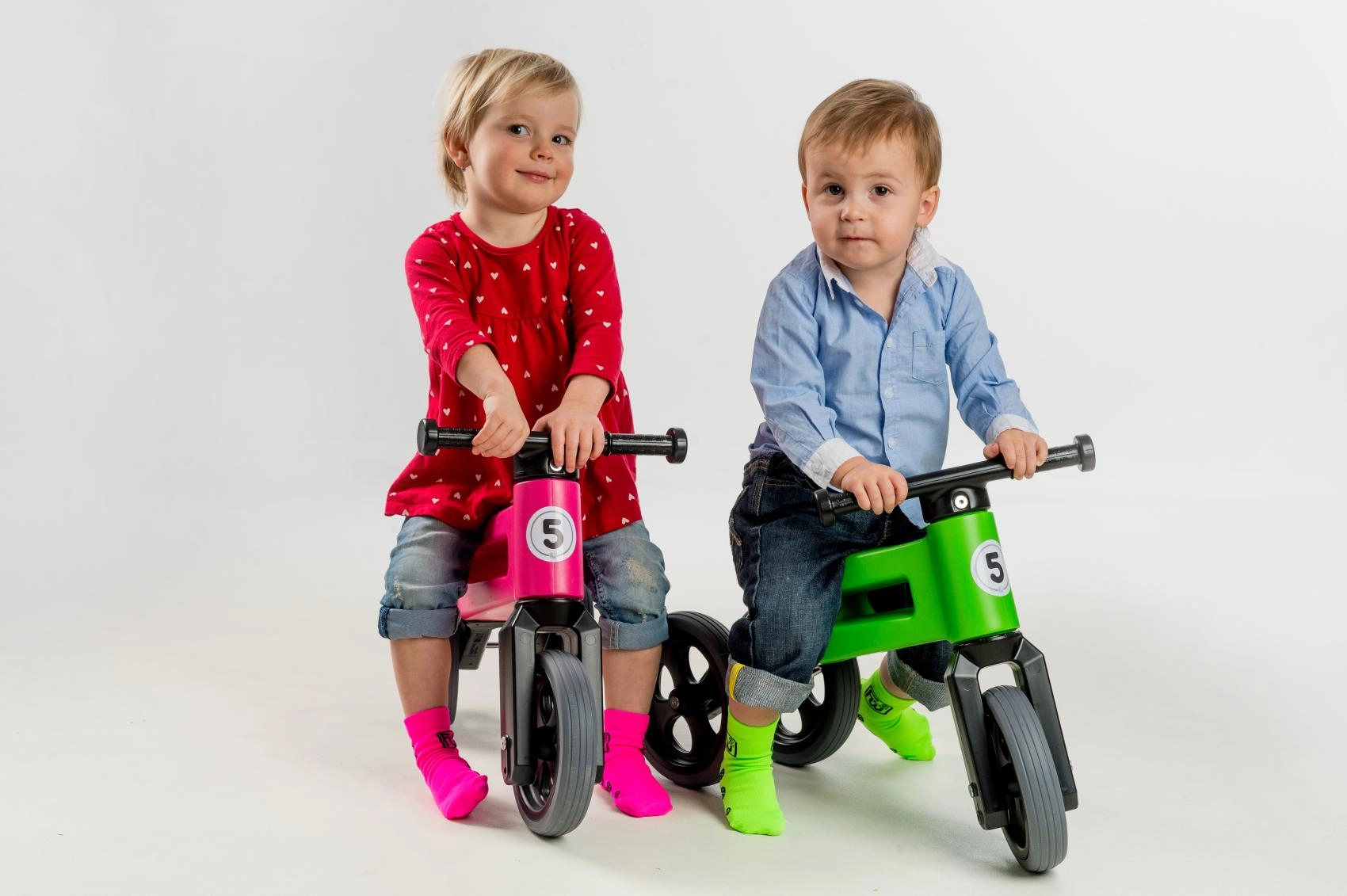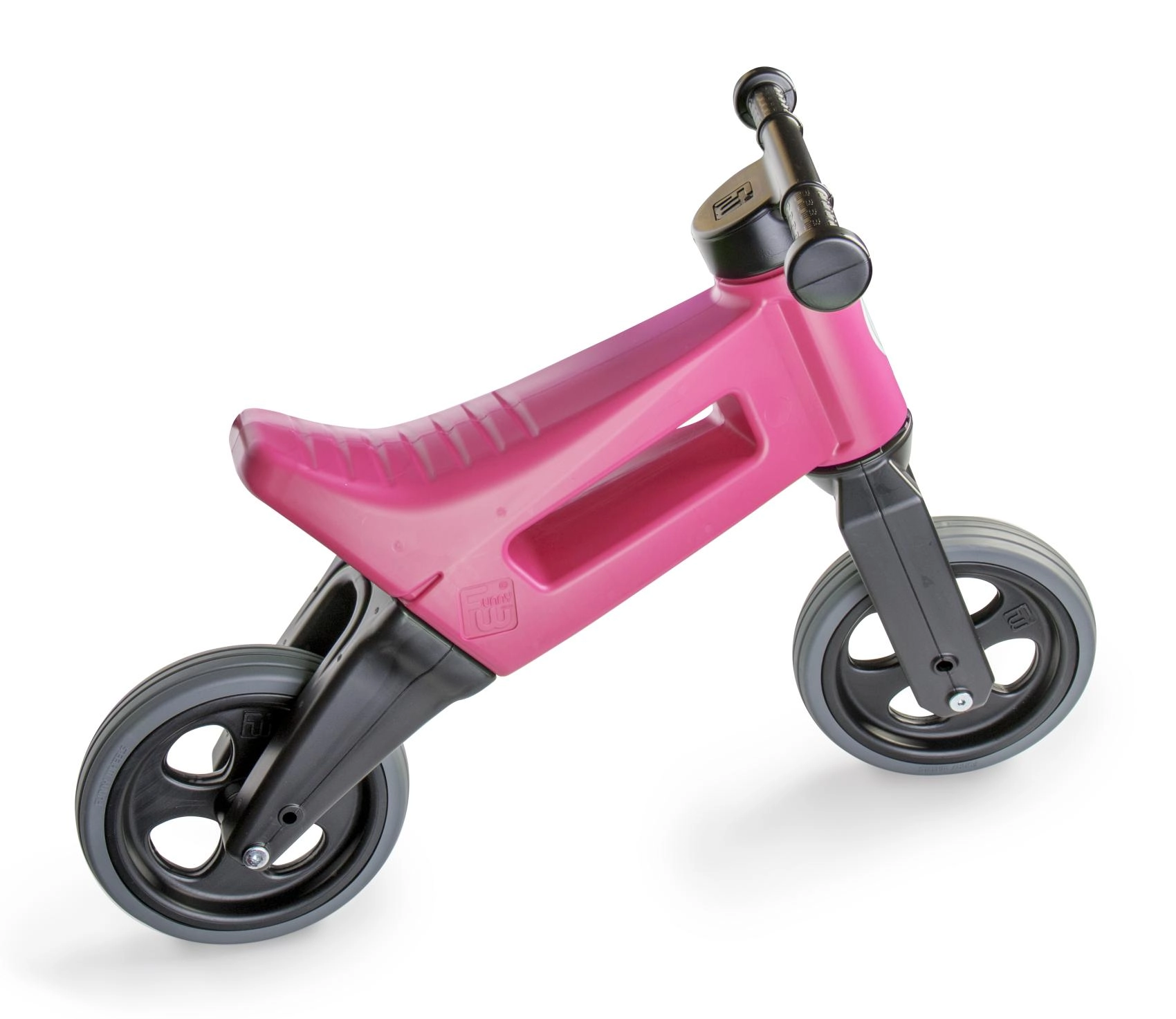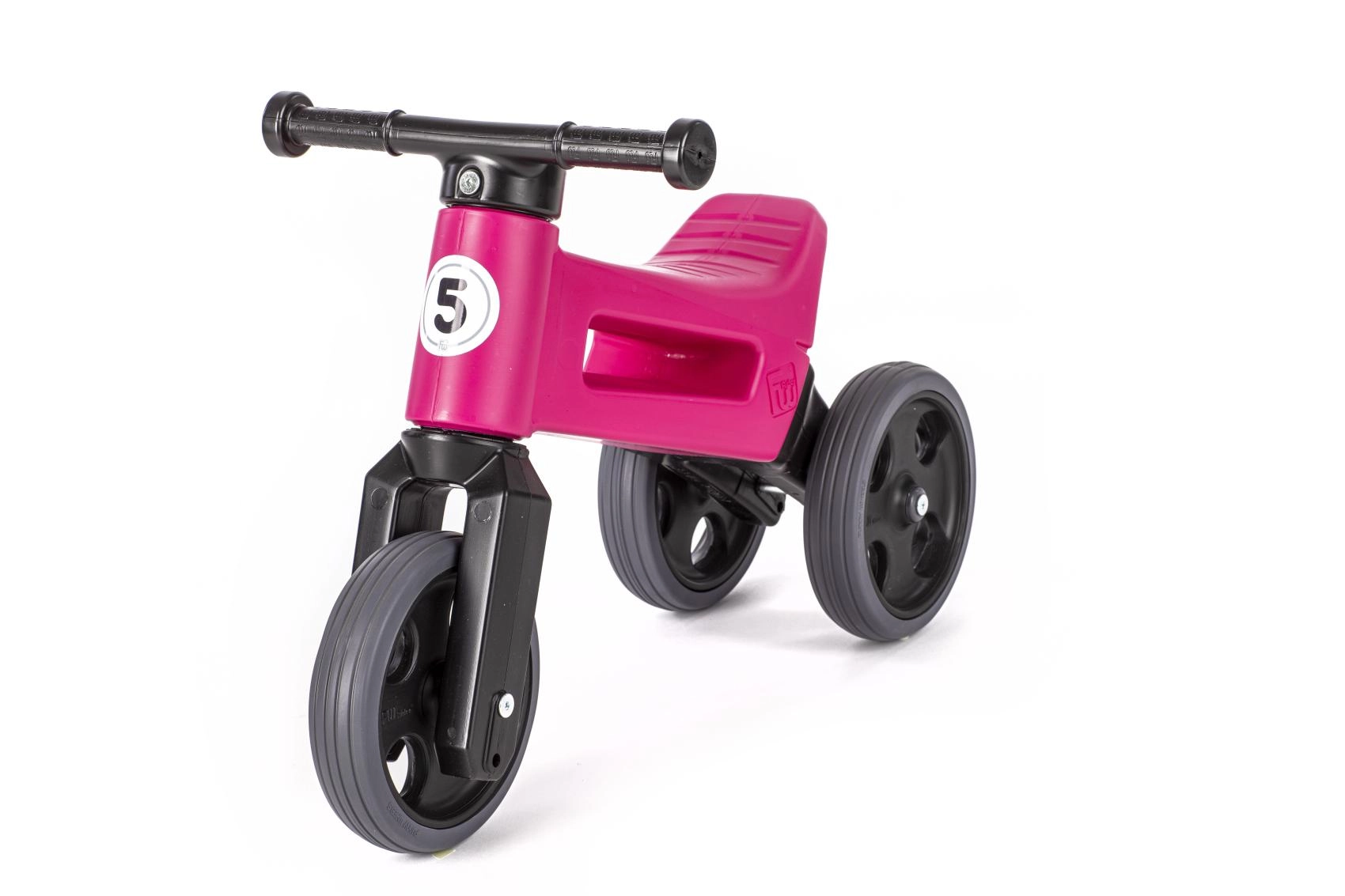 Lagana i stabilna guralica FUNNY WHEELS Rider Sport 2u1 raste s vašim djetetom – lako pretvorite tricikl u bicikl s dva kotača i podesite dve visine sjedala 28/30 cm. Tihi neklizajući pneumatici, sigurnosni detalji i nosivost 25 kg čine ovu češku guralicu idealnim izborom za vježbanje ravnoteže i koordinacije od 18 mjeseci.