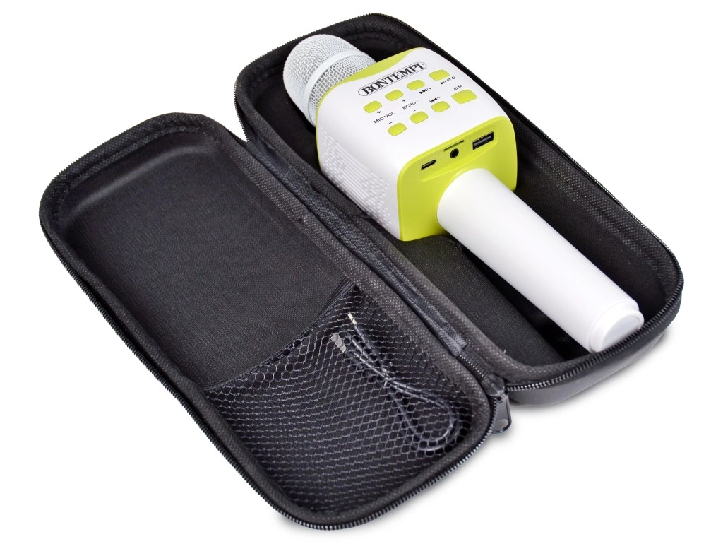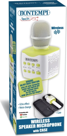 Uživajte u slobodi izražavanja s ovim bežičnim mikrofonom, idealnim za karaoke, prezentacije, nastupe i zabavu s prijateljima. Nudi jednostavno bežično povezivanje, glatko upravljanje glasnoćom i odjekom, efekt modulatora glasa te dolazi u praktičnoj zaštitnoj torbici. Integrirana litijeva baterija osigurava udobnu uporabu kod kuće i na otvorenom.