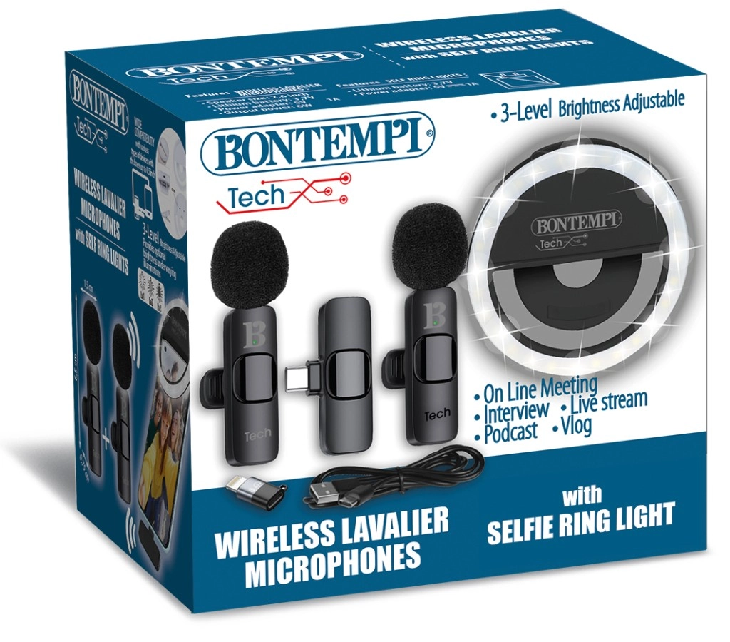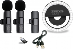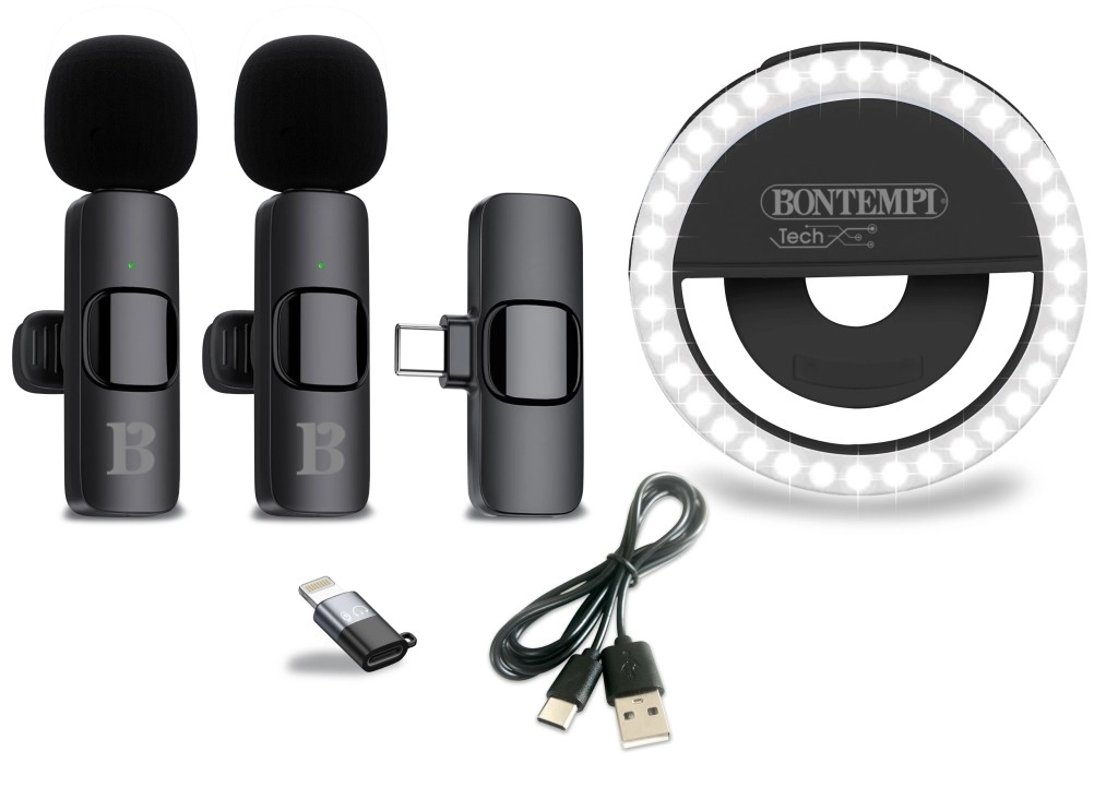 Ovaj praktičan set spaja kvalitetno osvjetljenje i bežično snimanje zvuka u jednom. Mini kružno LED svjetlo lako se pričvršćuje i zahvaljujući 3 stupnja svjetline osigurava prirodno osvjetljenje pri snimanju prednjom kamerom. Dva lavalier mikrofona prikače se na odjeću i pouzdano prenose glas bez okolne buke, što će cijeniti vlogeri, autori Reels/Shorts sadržaja i podcasteri.