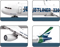 Konstrukcijski set putničkog aviona JETLINER 320 odličan je izbor za djecu i odrasle koji vole slaganje i zrakoplovstvo. Od 133 pomno izrađena dijela sastavit ćete dvomotorni model u elegantnoj bijeloj boji s plavo‑zelenim detaljima. Zahvaljujući naljepnicama model dobiva još realističniji izgled i odlično izgleda i na polici i u igri.