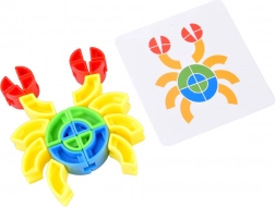 U kompletu su kartice s uzorcima prema kojima djeca slažu obojene dijelove na štapiće – ili mogu stvarati vlastite ideje i razvijati kreativnost.